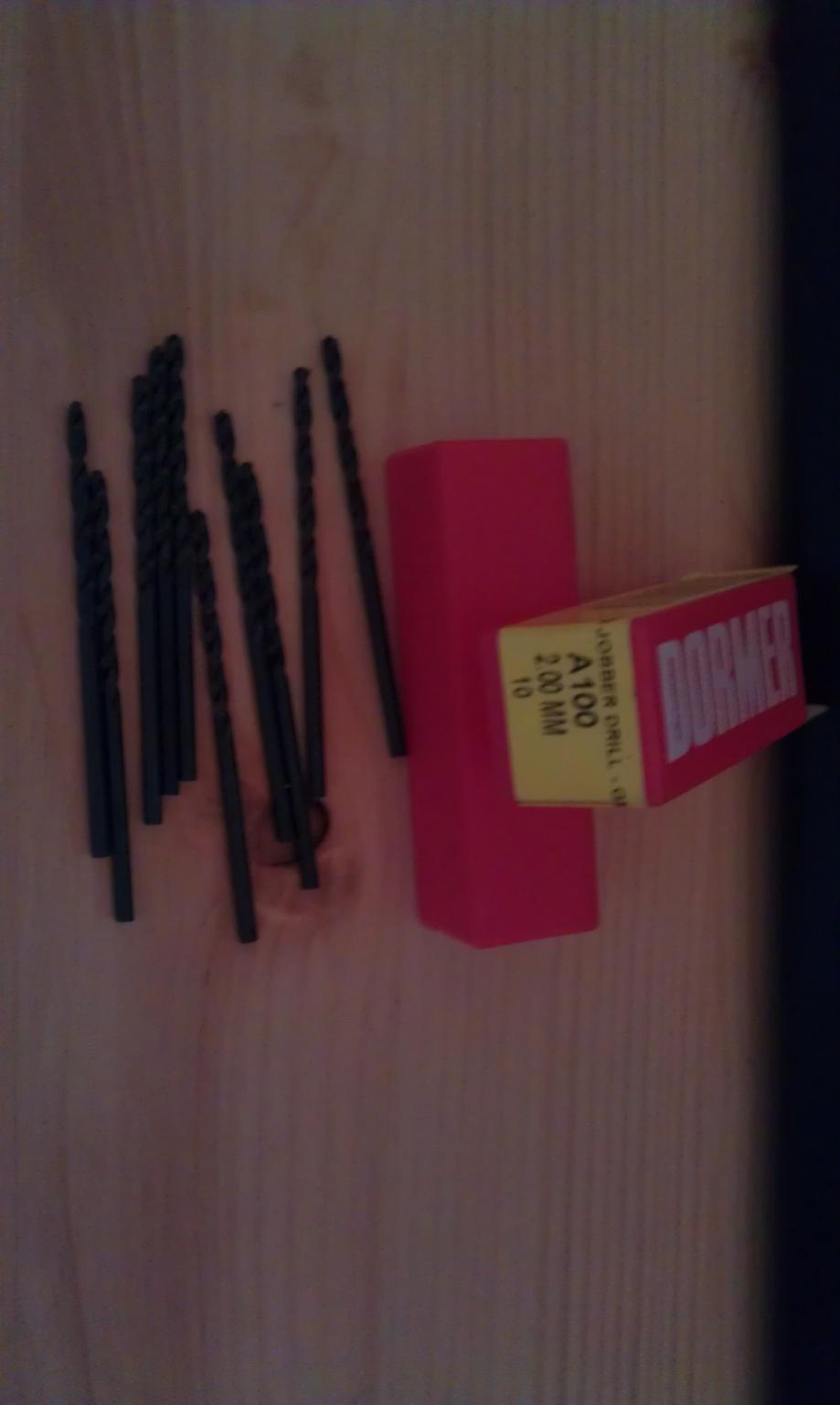 I have some boxes of drill bits up for sale. They are Dormer Jobber A100 bits. Sizes are 2mm, 2.5mm, 3.2mm and 3.5mm.
