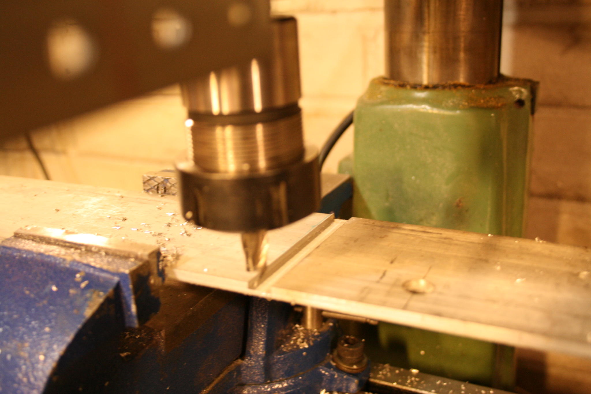 -- compressed air die grinder similar to this is helpful. I find it safe to use (no sparks + quite difficult to cut yourself accidentally), and cuts material quite quickly, but not too fast. Makes a nice sound, too. Of course not a CNC -machinist / milling machine operator approach, but hey, one haven't got a mill running now.