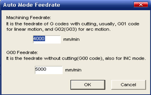 G1 would typically be used to command a cutting motion e.g. G1 F10 X100 which would move at 10mm/min to location X100 (Y and Z being what was previously set). In your setting F = 4000mm/min, however the NC setup of 76mm/sec is 4560mm/min which is too fast and likely to stall the motors, but its overridden by NCStudio. The operational number must be less than the fastest motor setting