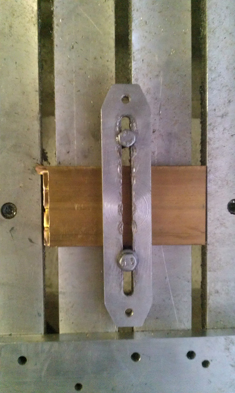 I mainly mill copper fr4....for clamps I just use ali strips ....about the same length as the copper board (therefore 160mm long) and about 40mm wide (the ali is 3mm thick). So basically one long clamp either side of the copper board...I have my CNCUSB tool sensor wire permanently connected to one of these clamps...& becuase it is ali, when I clamp the board down it makes electrical contact with the copper FR4 surface - which means I can then use the FR4 copper surface itself to touch off for Z auto tool zeroing.
