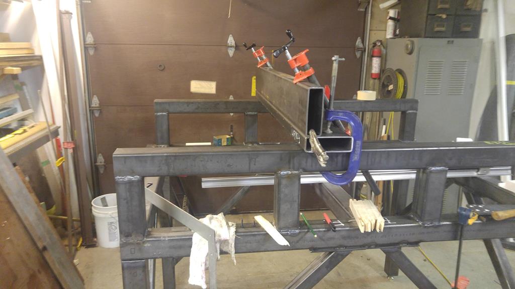 I have made a bit more progress. The machine is now on its feet and the work on the gantry has started. The gantry is made from 2 pieces of 2" x 6" x 3/16 steel welded in an l shape.