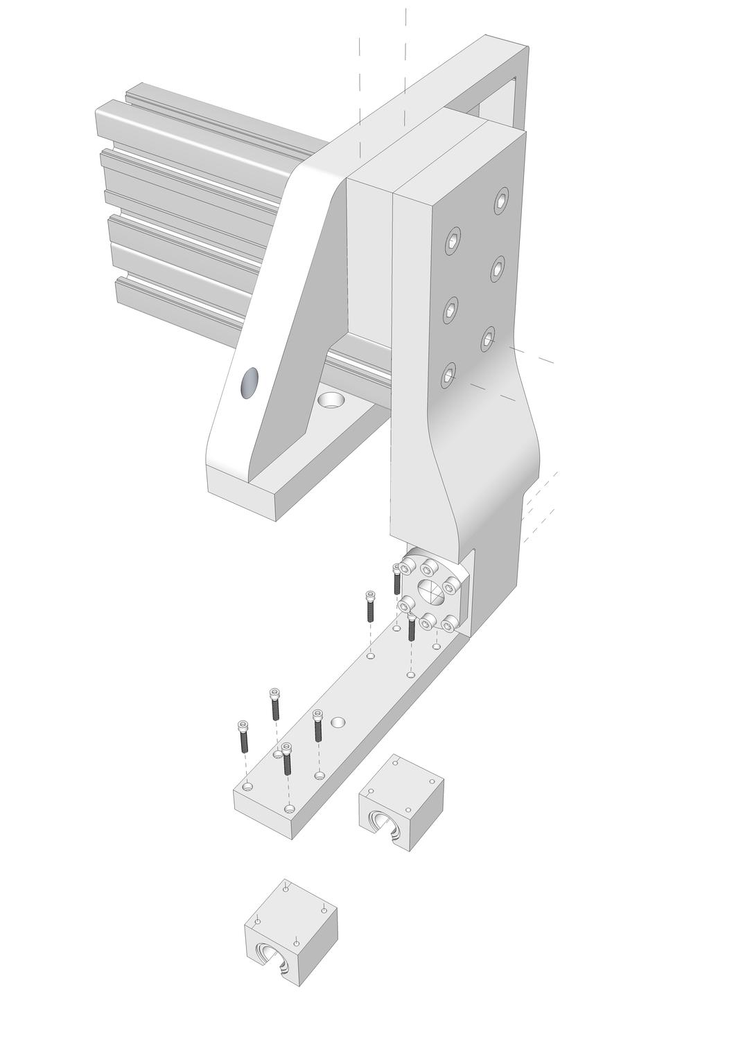 Attached images of revised gantry supports and ball screw connection detail. The last image is of some hefty milling in 50mm ali, but should be solid as a rock and looks pretty cool...