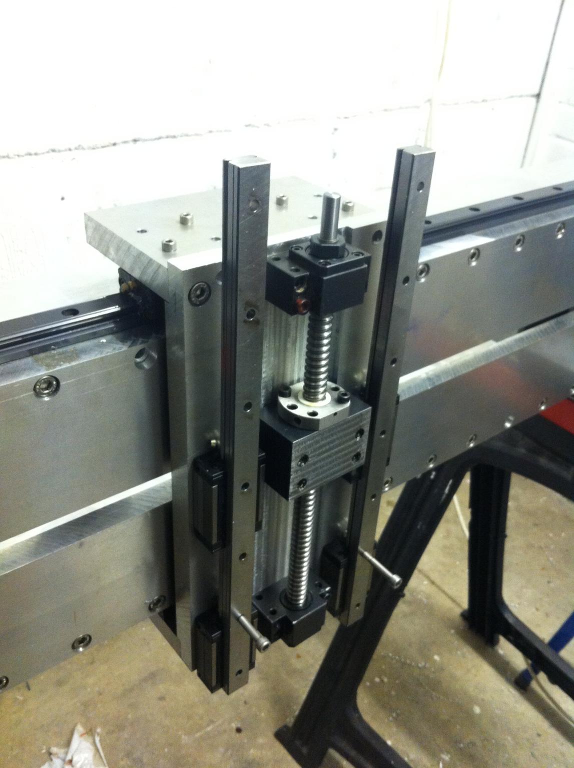 Looking at your picture, you have the Z ballscrews bearings bolted to the fixed Z plate, and it looks as if the ballscrew nut will bolt to the moving Z plate. How are you going to adjust the nut or bearing position, or the guide rails, so that everything is nicely aligned? I've been looking at these details on my own design for a while and am looking for inspiration! I have some ideas, but always keen to re-use other people's work...