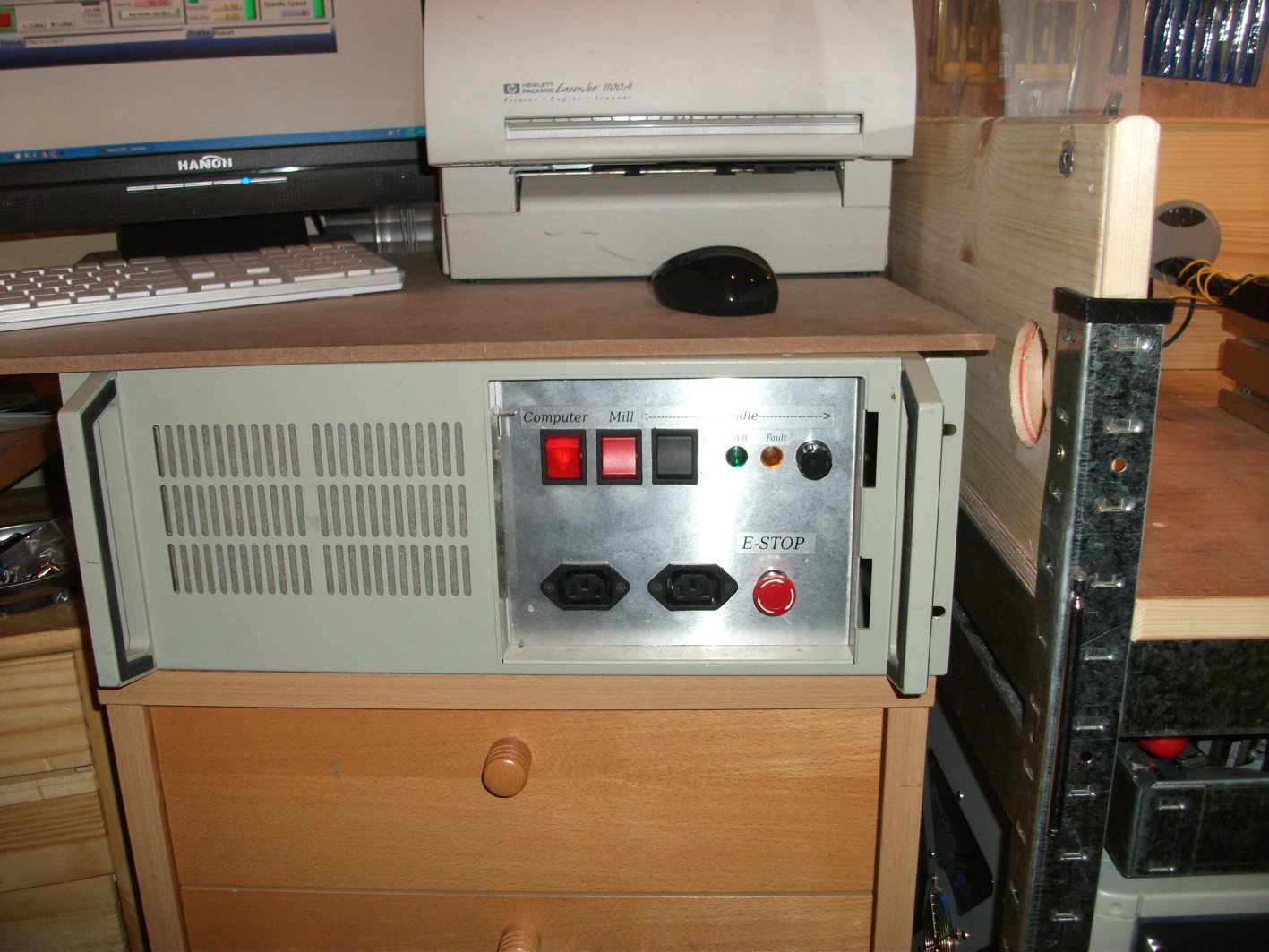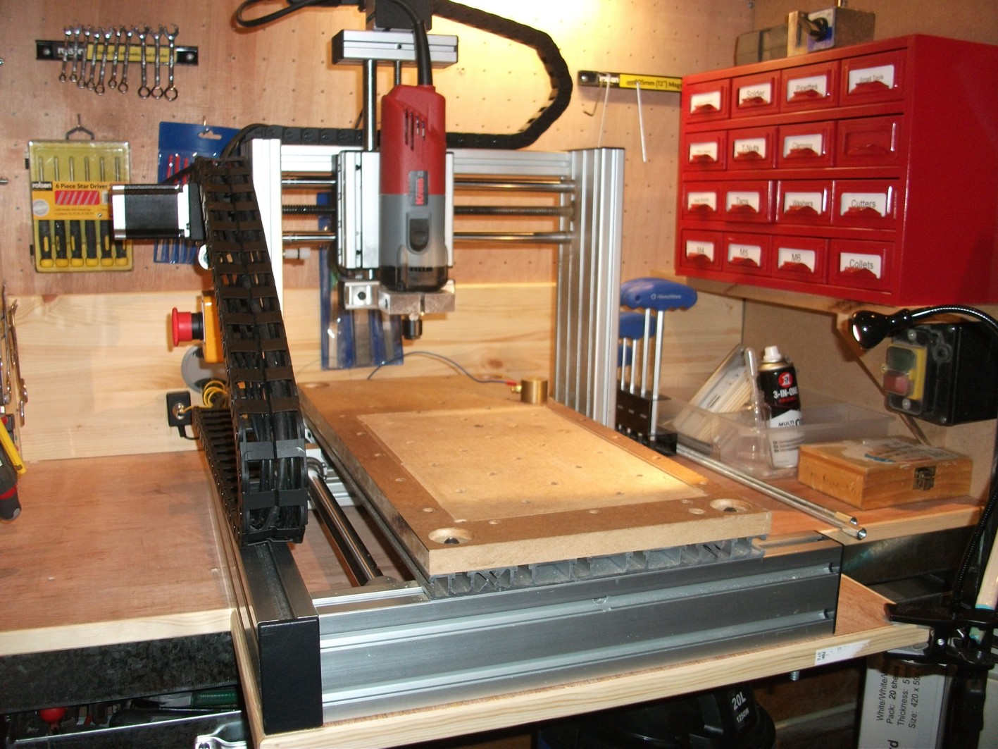 I have owned a cnc gantry router since March and am still on the learning curve (going round the bend). My purpose is to use it to engrave circuit boards and make housings for my pet project, a MIDI Harmonica. I have an entry level A4 machine from Marchant Dice and they have been most supportive in my stumblings. I have already modified the machine to stop me smashing inductive limit switches and have been having a lot of fun and frustration with Corel Draw, AutoCAD, LazyCam and Mach3. Apart from making the Control Box front panel, carving a house number in mahogany for a friend and making a cane mould for a glassmaker (Stuart Akroyd), I have yet to start my own project.
