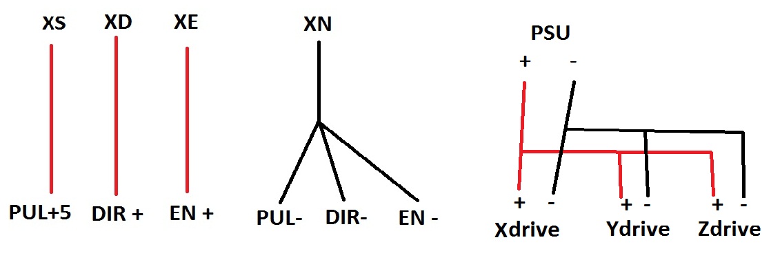 The M542 is marked Pul+ (+5v) ~ Pul- (Pul) ~ Dir+ (=5v) ~ Dir- (Dir) ~ ENA+ (=5V) ~ ENA- (ENA) so 4 into 6 don't go, can anyone help with the correct wiring scheme please.