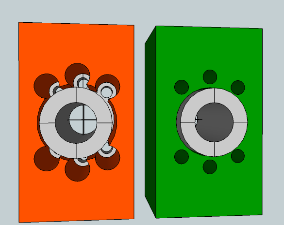 In my attached pics the green more or less replicates the commercial size internal dimensions, and the orange is what I'm thinking of getting machined to give a full 4mm of adjustment all round, and think it will still be plenty strong enough using washers, but am not sure?