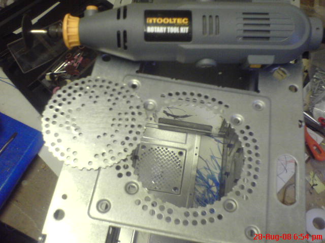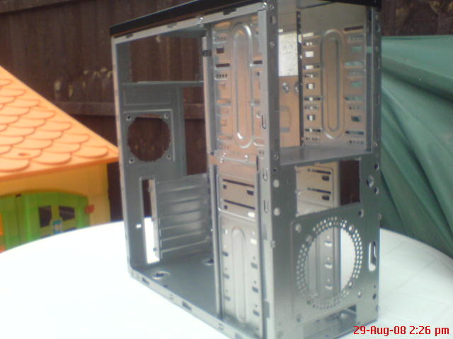 Sorry didnt mean to post so many pics...i should have thought about it, the only problem i had doing it that way was the 542's are a little wider than a hard drive and as luck would have it the side of the rom bay lined up nicely with where the side of the hd bay needed to be. I did have a 4u nocking about i could have used and i did strip it down ready to start hacking it up but it was old and grey/cream and a new tower was only £20 and looked a better option at the time. I did plan to put the fuse holders, l.e.d extensions for the drivers and so on in the front bay panels but i nver really got that far, the case and bits are still sat on a shelf collecting dust.
