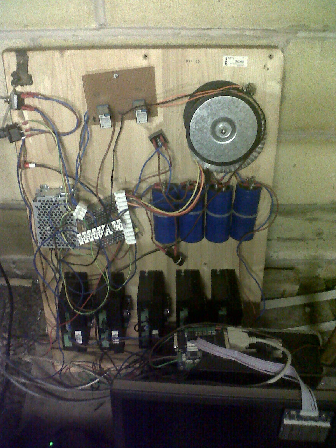 Main 70v PSU with 24v safety system and 5V for BOB mounted on a temporary board.