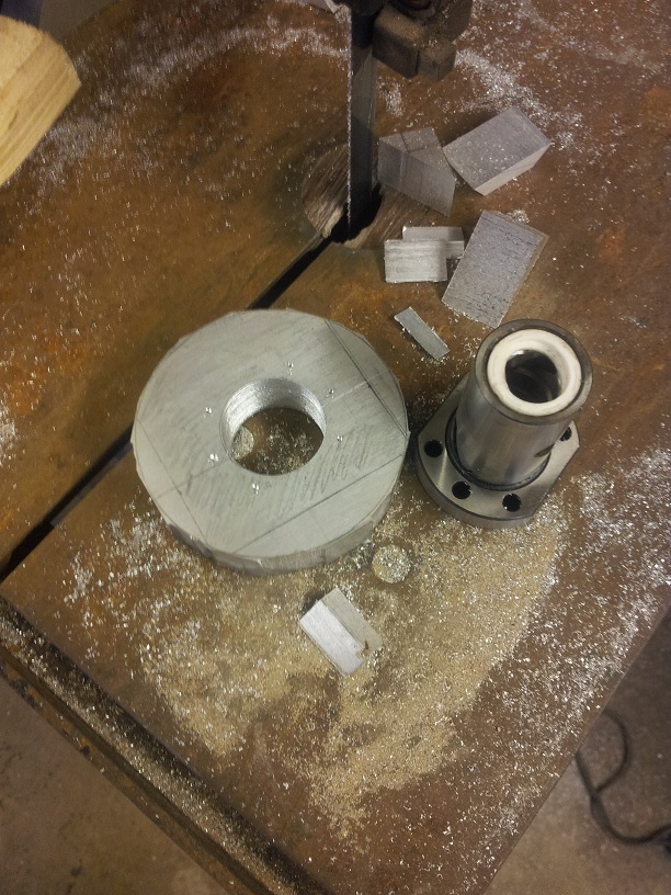 cut the circle out with the band saw (roughly). so it will go in my three jaw lathe chuck.