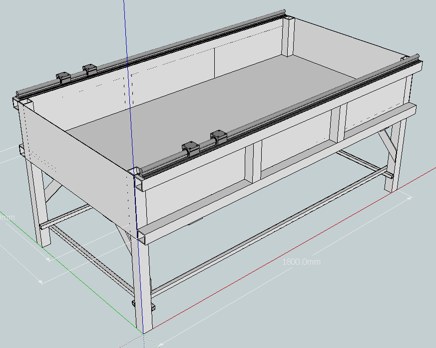 The side sheets were there mainly to prevent chips flying everywhere but I'll add some additional brackets to the design so they act as bracing.