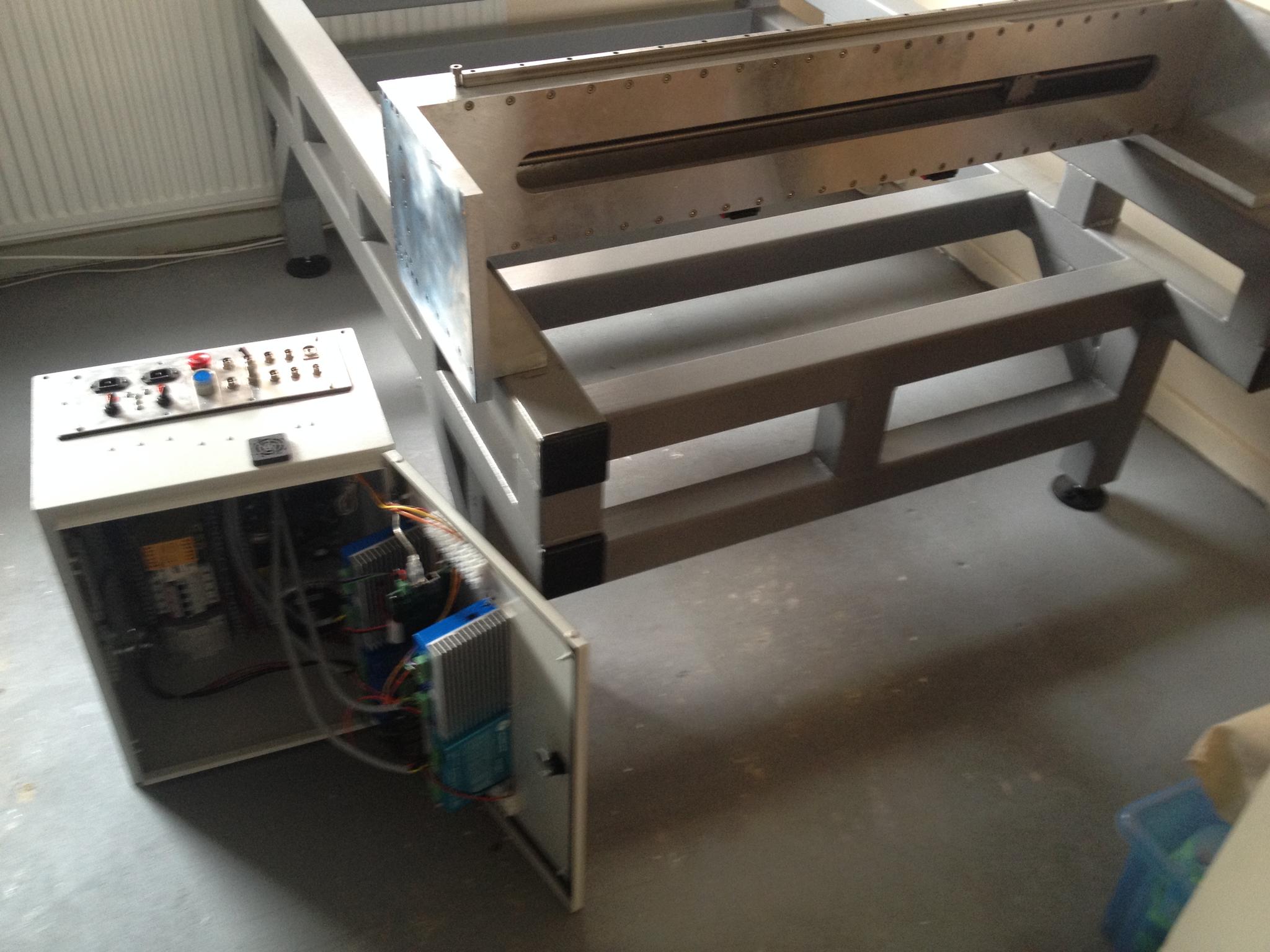 Step closer today. Got the frame up the stairs with a lot of help. (The floors are concrete - so should be able to take the weight). Travelling a bit with work for a few weeks now but hopeful for a Christmas live-run. Still got the mechanical X movement, limits, echain, wiring etc to complete.