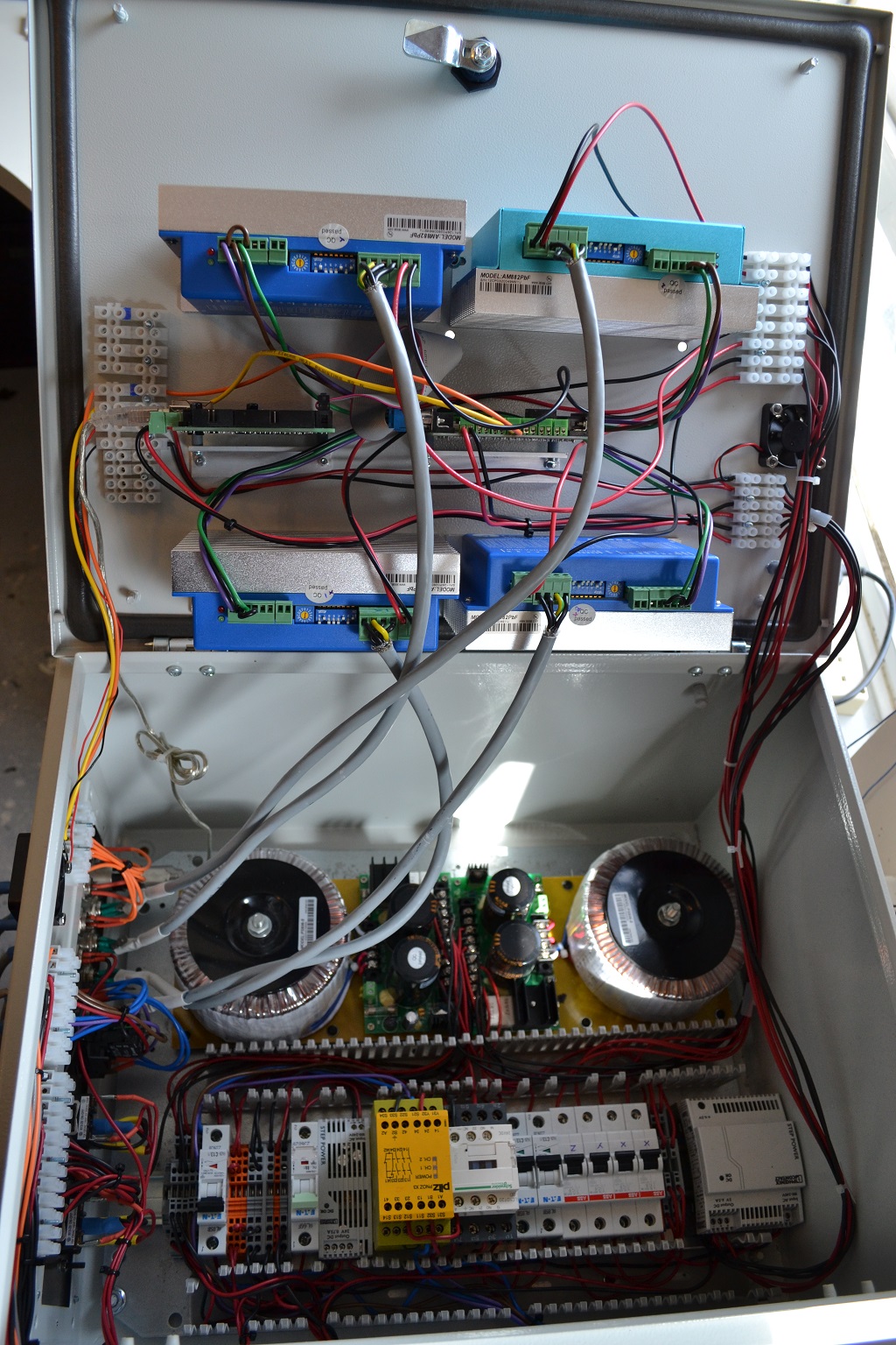 I'm nearly there as far as the initial build goes. I've tested the safety circuit & limits now but not powered on the drives and motors lately, although they were spinning many months ago. Learning a lot along the way, lots to try differently in version 2.0, more on that when its working. Right now am waiting for a PC from Ebay that I can dedicate to running the machine so should be able to run the smooth stepper and BOB up fully in a week or so and once the Home switches work I can start to join all the dots together and get some movement. Enjoy the photos (When I see a way to enter them).
