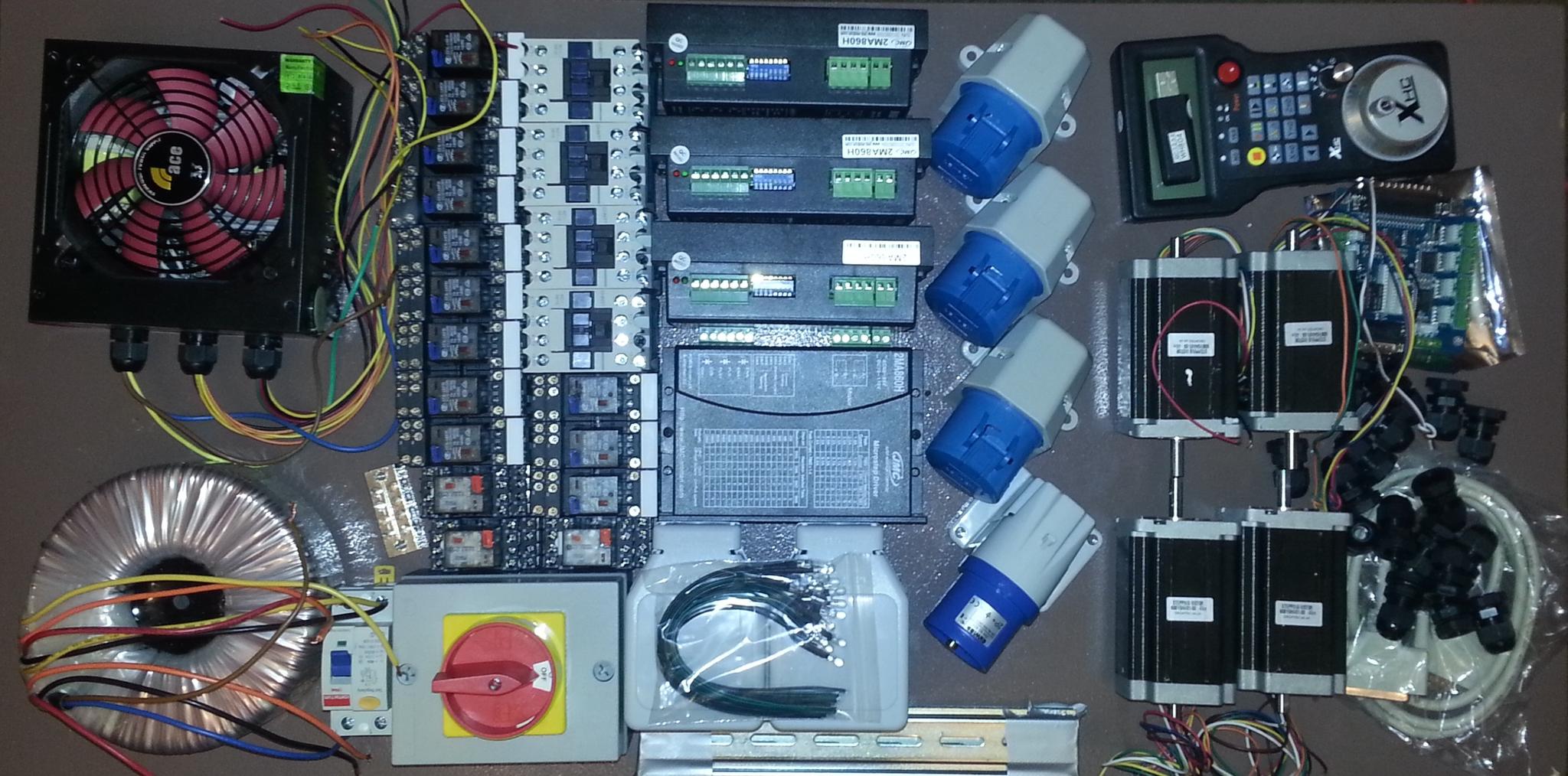 Ok, Ive recieved My toroidal which is 4x24 1200VA so using a series arrangement i will have the 50-80vac I require for the Drivers/steppers i will also have 1 or 2 free windings at approx 24vac which is what the contactors require, I will be using an ATX power supply for the smaller relays and the indicator 3v LED's and 5v for the bob as i have one and its easy, im still waiting for the Enclosure which should be here in the week sometime, and the caps im sure i have beneath a few cob webs somewhere.