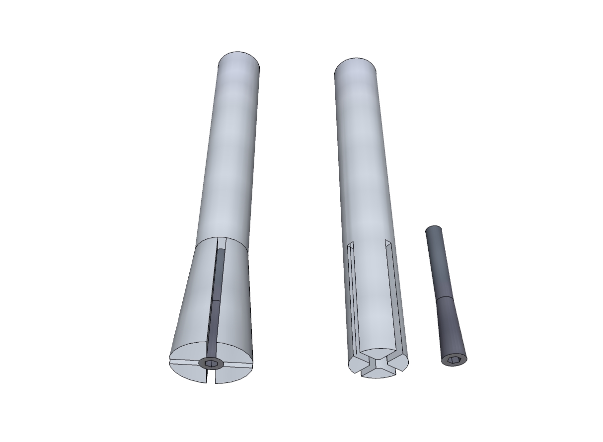 Is it hard to machine such a thing? it should slide inside the shaft and then lock when the bolt is put it. The dia at the bottom could be 13.5-13.6mm with the 'D' shaped elements bent slightly to the inside so that it fits on the part. Putting a bolt in would push the sides out and press against the part. Main question is how strong will it hold it.