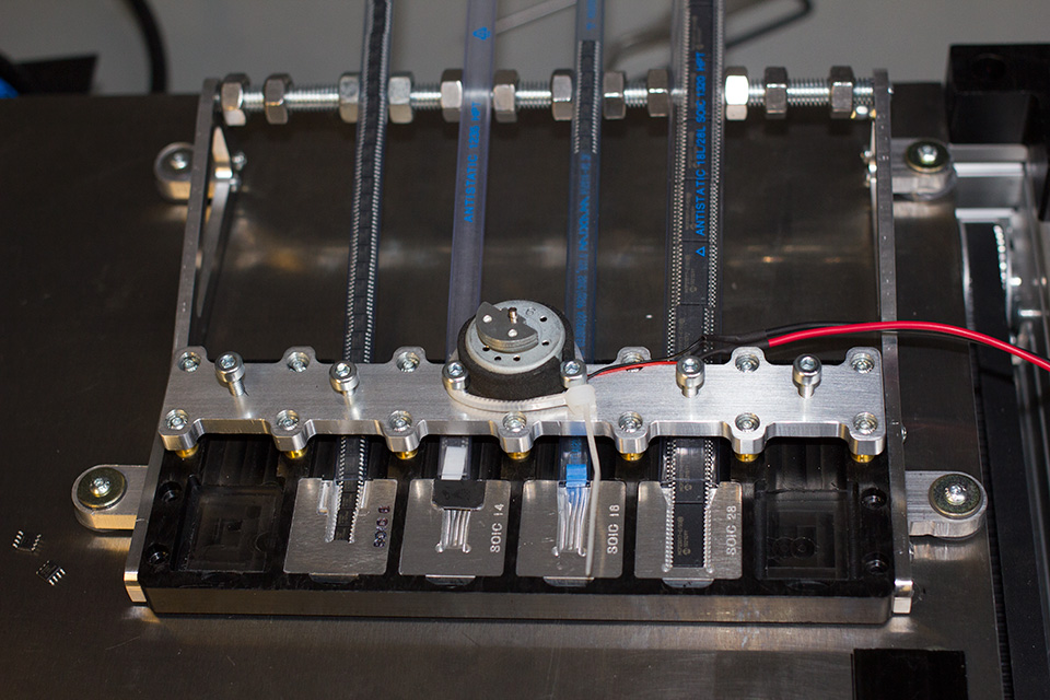 The chip feeder is a vibration design using a vibration motor from an xbox game controller.