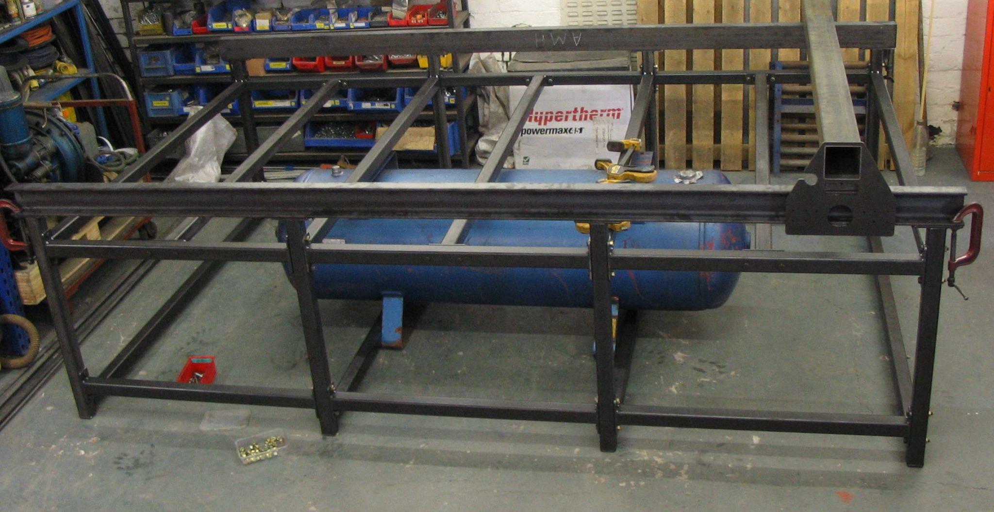 I had some parts laser cut out to make a nice job of the bolt together components, then once the steel was cut to size I tacked everything together and loosely assembled the table: