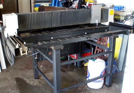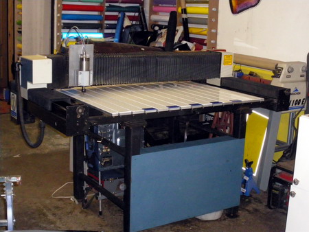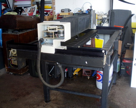 I hadn't considered an enclosure Geoffrey but if I did make one I'm not sure what sort of size it would need to be. the machine will take a 10 x 5 sheet although the maximum width it can machine is just over 4 foot. The gerber software used to index long lengths & you just had to feed a bit more through every now & then, won't be running the gerber software with it running from mach3 but had still thought that would be possible with a bit of thought. Not that I have any plans to machine lots of long lengths but it's nice to have the option just in case.