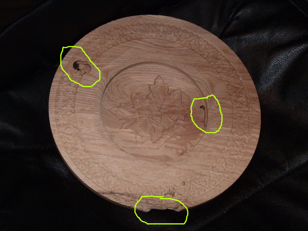 So finally got it roughed out and put in the only 2mm ball end i had and remembered to zero. Ran the file and the end mil broke. Oh joy. Re-did the file for 3mm ball end and completed the carving. Put in the v bit for the top carving and somehow lent on the page down and pushed the bit right through the edge of the bowl. Got myself together and started to run the edge file. Bet you cannot guess what I forgot to do? Plunged 12mm into the plate with a 12mm vbit. Finished the edge and decided that its all your fault.!! Fancy letting nutter like me loose on a cnc.