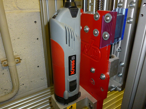 There are four holes in the back plate for the lower z axis blocks, so it looks like someone moved the blocks up to get the cutter head nearer the bed.