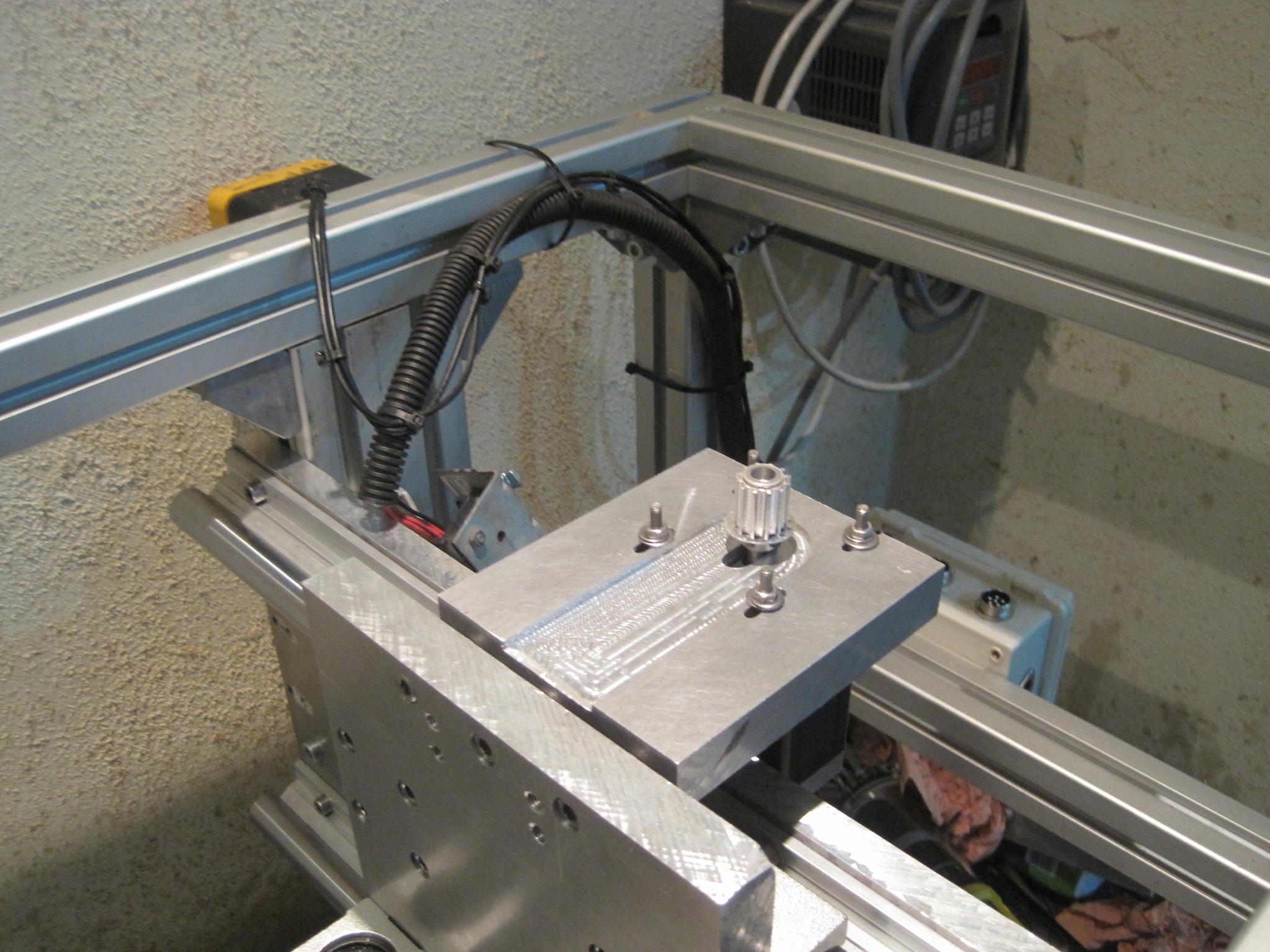 3 axis CNC/router / Alu profile frame....25mm Alu Cutting bed X=500mm Y=300mm Z=110mm.....Supported 25mm X rails ....Supported 20mm Y rails....Supported 20mm Z rails.....2.2kw Chinese WC spindle..... CSLAB CSMIO/IP-M 4-axis Ethernet Motion Controller....M542 Drivers..SY60STH86-3008BF Motors...running....Mach3 / Cambam / Emachineshop.