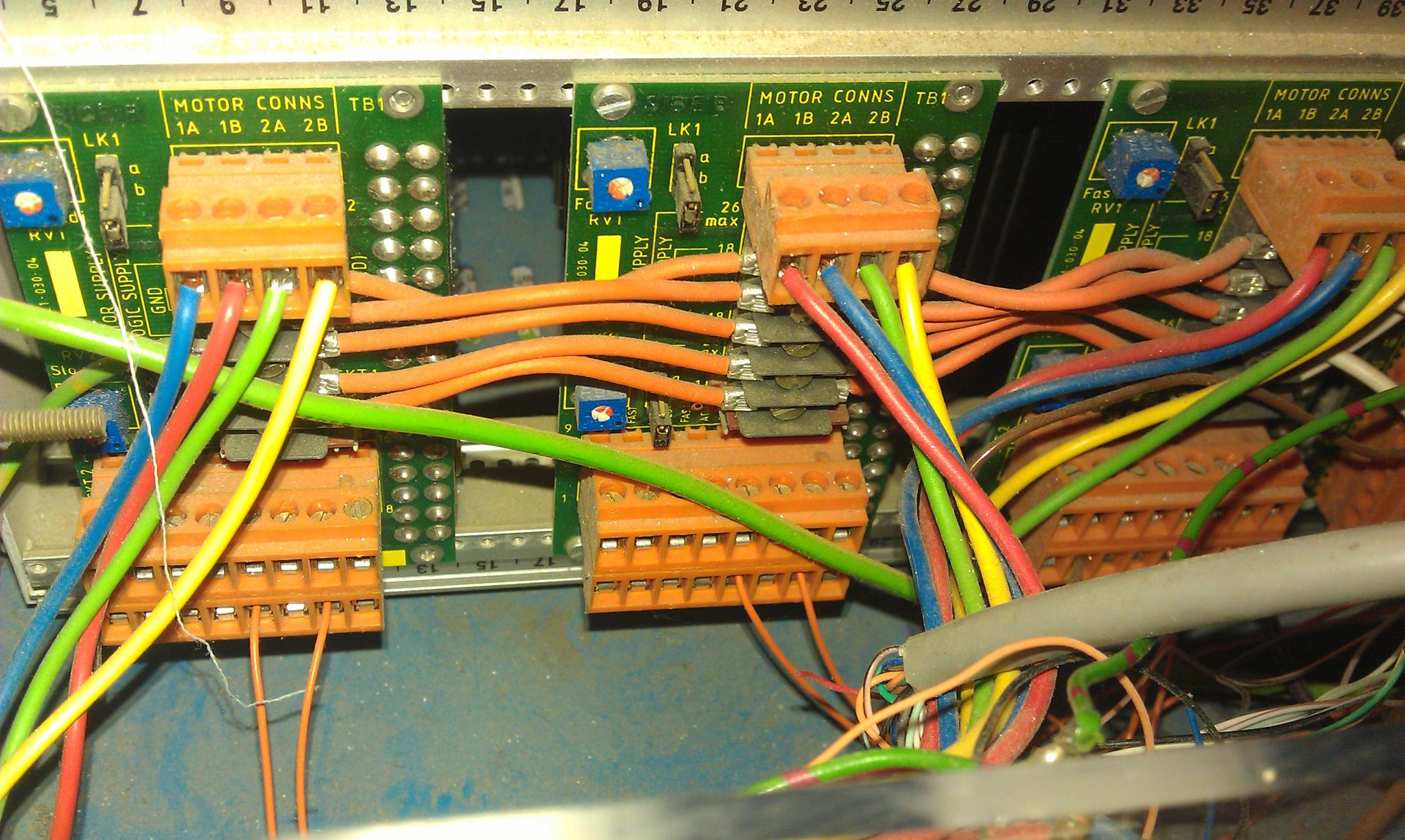 Other than showing wrong cable this the video is pretty much useless has it's blurry and your moving around too much. Concentrate on showing the control box internals and pan slowly and hold still then same with motors slowly pan around the wires.