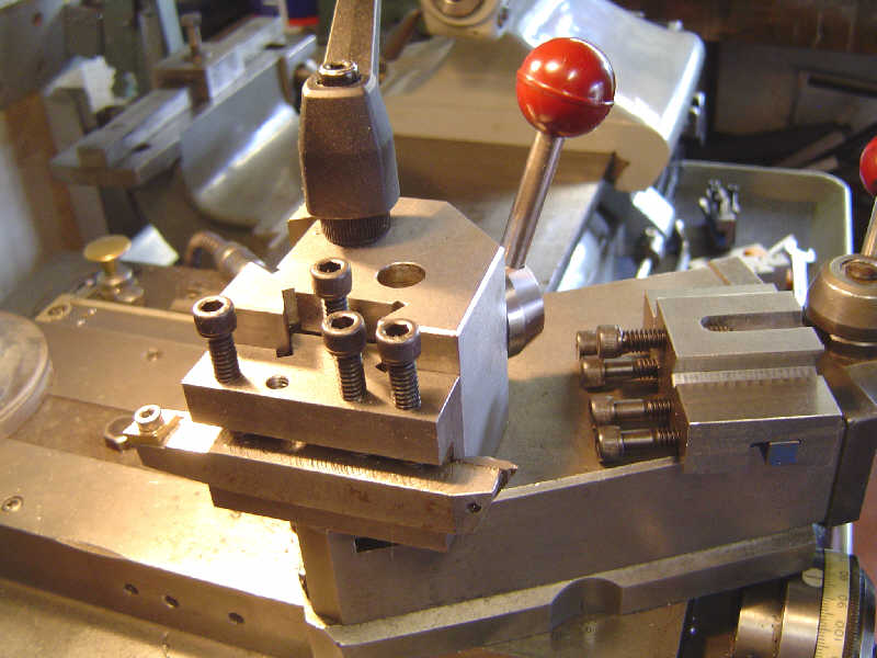 I made a Hardinge style QC tool post for it (The Hardinge ones are impossible to find in this country) , a Metric banjo & bobbins (shaped to hold the large Myford 127T translation gear) and a close up steady to enable me to cut very small threads