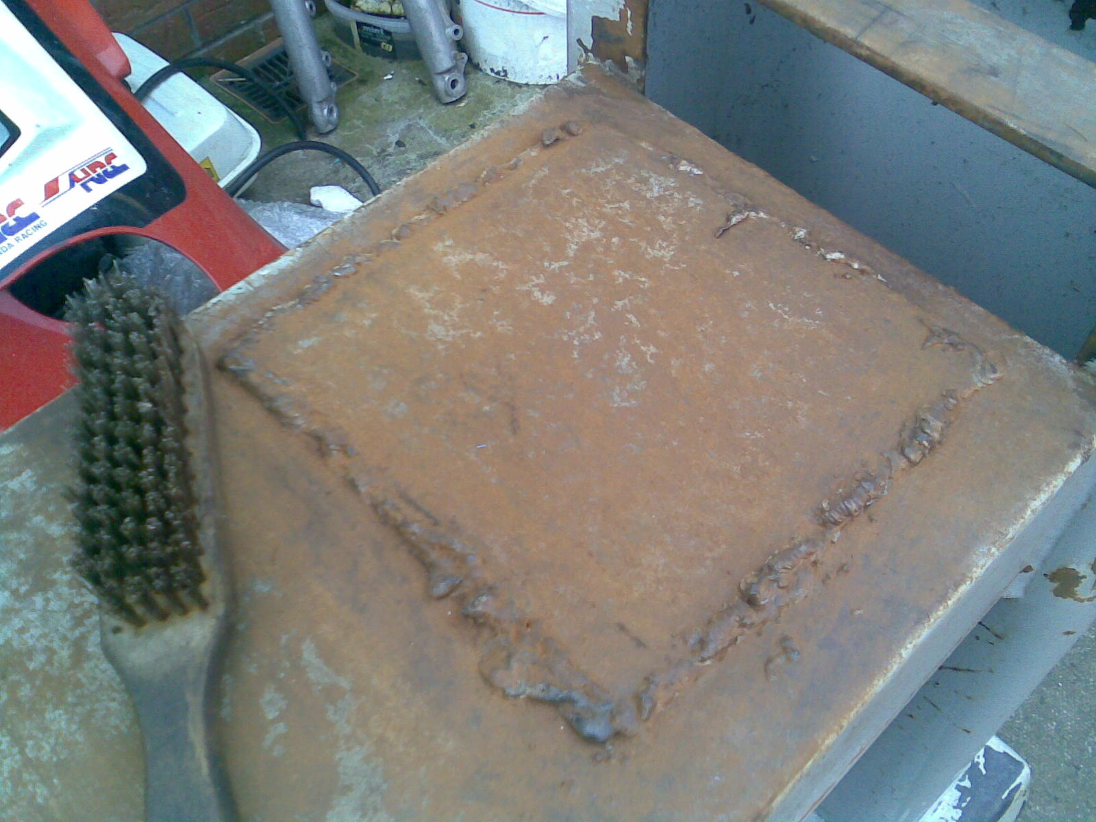 Get an angle grinder with a metal brush (You can get one fron 15 quids) a lot easier than a hand brush.