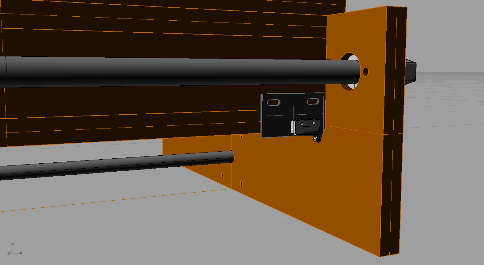 Drive is through M12 threaded rods with anti-backlash nuts. In an attempt to unload motor axles I intend to use thrust bearings and lock nuts to support the rods in the frame.