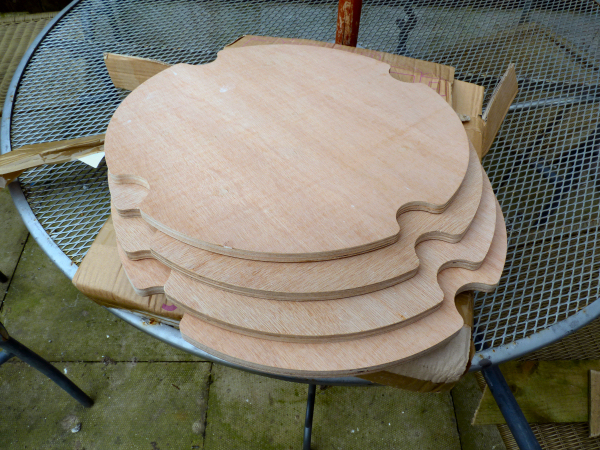 I need 4 ply disks cut please, below is the pic of the unit they will become part of. Plan is to paint it white, add the disks to act as shelves, stain and seal - Job done. As you can see i've built a "lean to" down the side of my house so it will be out of the rain but would like marine ply if possible but i guess something like far eastern would do.