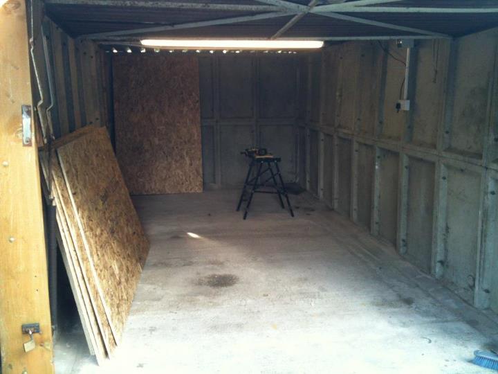 now the choice of how the garage has been built is not my choice as i'd have had brick built over this any day, but either way its at least 20 times bigger than the outhouse i worked out of at our previous house.
