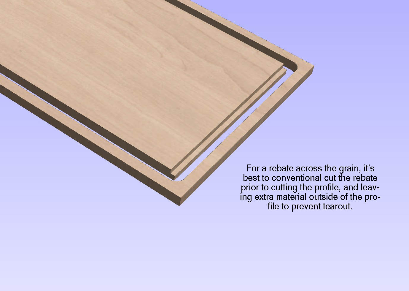 For best results when cutting a proile, conventional cut and always have more material than the tool diameter outside the profile to eliminate tearout. Attempting to trim 3 sides of a board will almost alway result in one chipped corner, whether climb or conventional cutting. Climb cutting will chip at the start of the cut, and conventional at the end of the cut.Last edited by Ger21; 10-06-2012 at 02:20 PM.