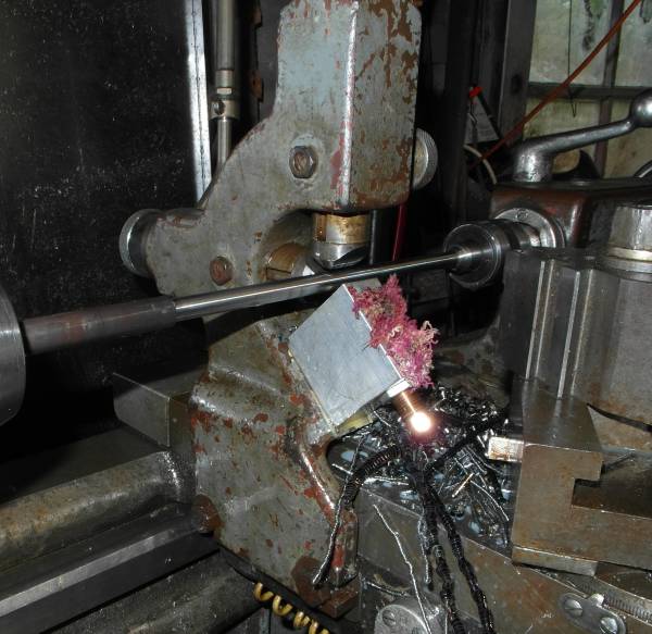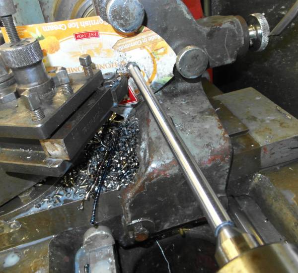 I have to be able to turn a 10" length. I tried a steel block in my rear tool post as a steady, I drilled a hole in it and ran the bar through it, then turned the bar behind it[tool following]. The block had a well in it full of oil, but it welded to the block. So that was no good. I had a tool holder with a tag brazed to it, that I have bolted a chuck of phosphor bronze to and used as a steady before, the steel bounced against it and it wasn't any good.