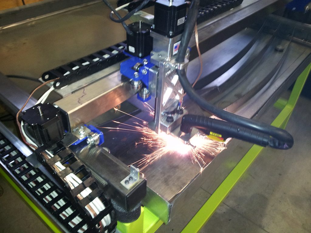 I am running a Longevity Forcecut 42i plasma on the table. I am getting excellent cut results and the consumables seem to be holding up pretty well. The CNC port on the front of the machine allowed for a pretty painless connection to the Bladerunner system. It is pinned with a slightly different pattern than the Hypertherm units but it is well labelled and easy to figure out. For the $ this is an excellent value cnc plasma source.