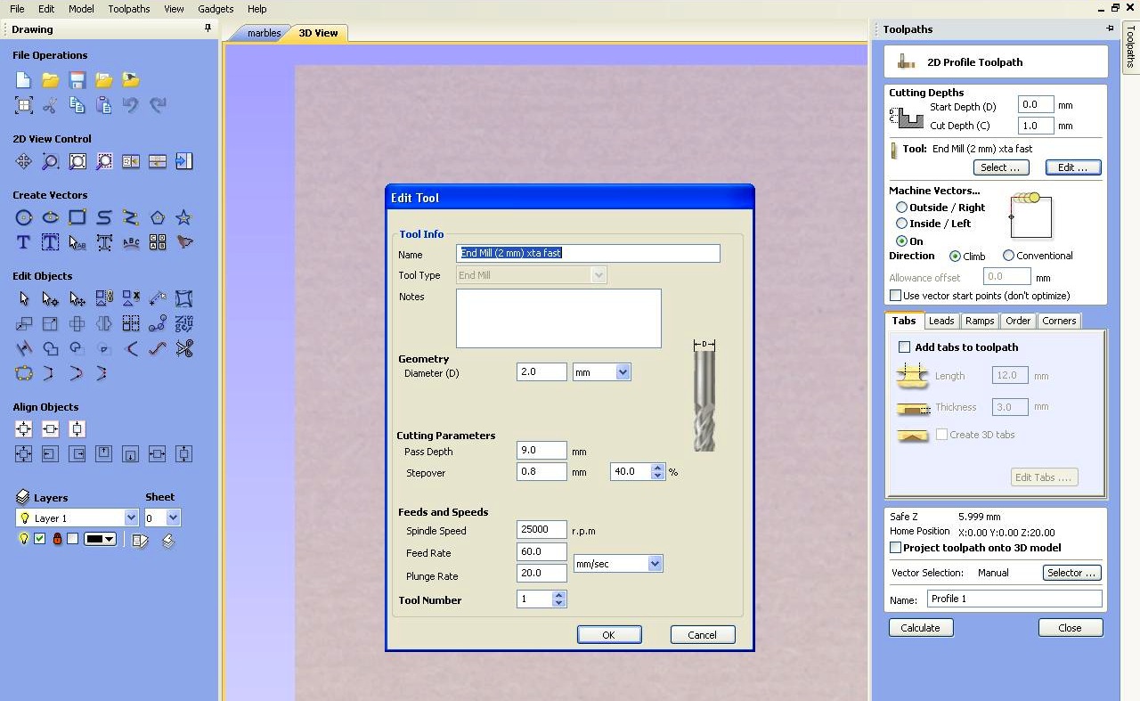 (1 = End Mill {2 mm} xta slow)