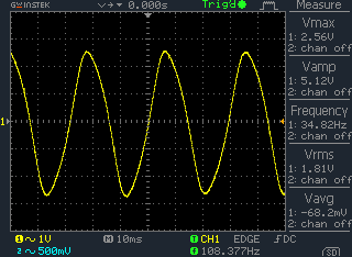 That's with 700mA through one phase and a 1K resistor in parallel with the other phase. I also added a 1nF capacitor in parallel with the resistor to filter out the many spikes on the waveform, which the oscilloscope reckoned were at about 20kHz. I think this motor may be damaged though, as to get 700mA through it in bipolar parallel required approximately twice the voltage on the phase I used, compared to the other phase, which implies one coil is open circuit. I should try again with a more reliable motor! This does mean that the test at 1.4A was exceeding the rating somewhat, so I didn't do it for long... may cause a problem due to saturation.