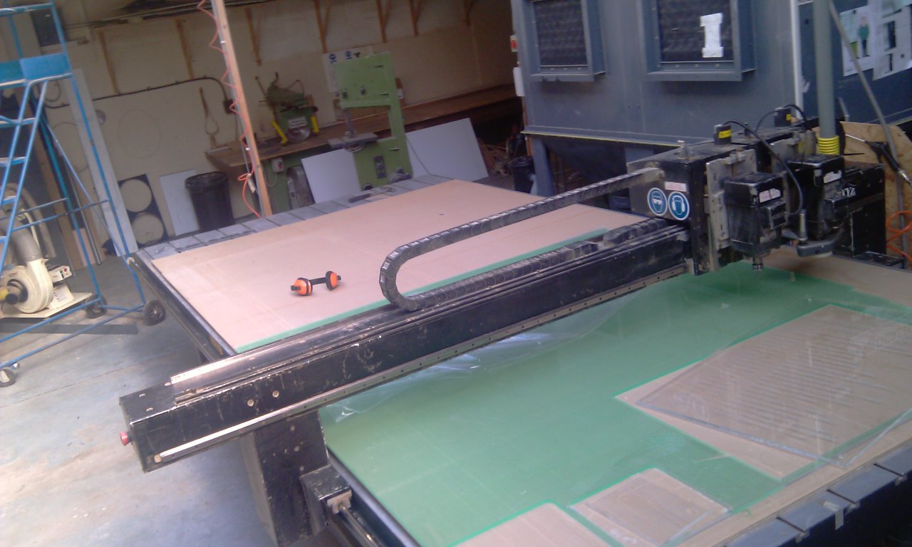 We currently use the CNC for cutting materials such as plastics, foamex, acrylics, plywood, sterling board, mdf, aluminium and acrylic stone.