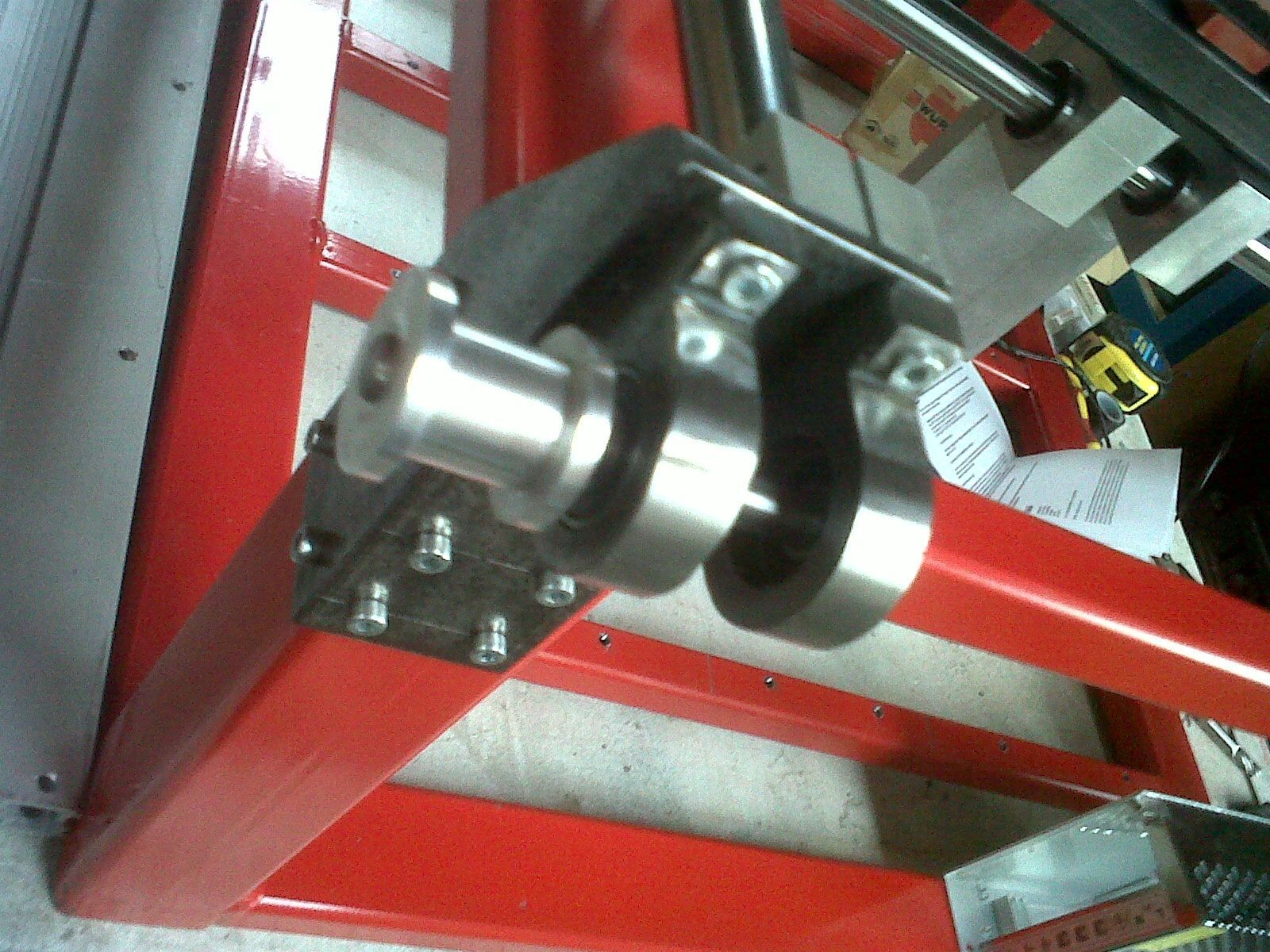 Here are some more pictures of the build. The main of the frame was mig welded together and I have used an old saw bench inverted as the base, this way I can use the T slots to hold things down. I have already made the bearing blocks. They are 31x41x50mm and were drilled out to 23mm first and then put onto the faceplate on the lathe for boring and reamed using an expanding reamer to 32mm. Then they were honed exactly to size for a tolerance fit. Unfortunately I am not using supported rails but that is what I had available and I am working on a tight budget so maybe an upgrade at a later date.