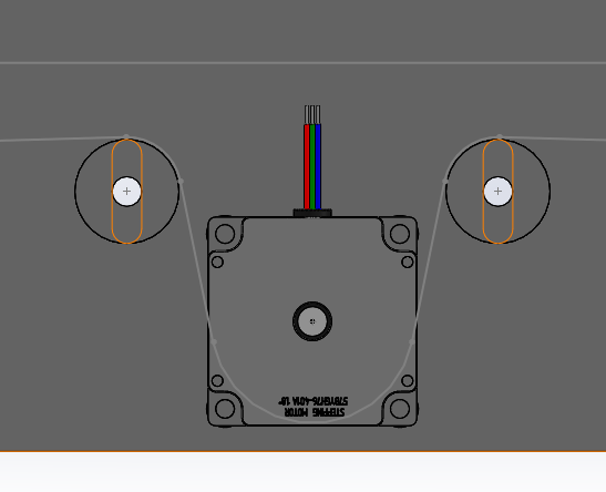 The stepper and the two idler pulleys are mounted on a 10mm aluminium plate. For build simplicity the idlers are used to take up the slack on the belt rather than the stepper. The stepper is mounted using stand off legs. The belt length (at central idler adjustment) calculates as 1736mm