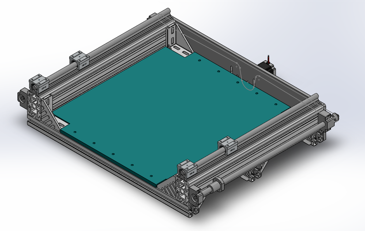 The frame is going to be all extruded aluminium if possible. The blue sheet forming the bed is 600x600mm to (hopefully) give a cutting area of 400x400mm. Z axis travel will be fairly limited, perhaps as little as 50mm, as this machine is being designed to mainly cut aluminium.
