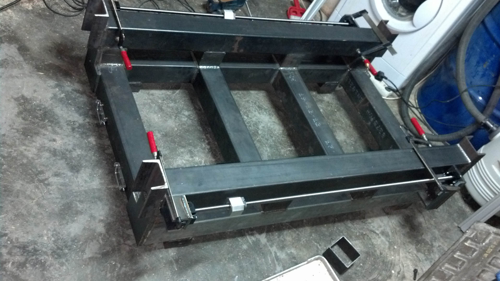 Well, the laser cut parts came. So, i finished soldering the parts to the frame. That includes the ball screw mounts. What i did was mount the ballscrews to the supports/in the middle so there is place left for adjustmennt/ and that greatly helped the correct placing. Carefully made some tacks with the Mig and waited all to cool, so checked again if the screws move smoothly. Have to note that the machine was welded with precision <1mm greatly helped.