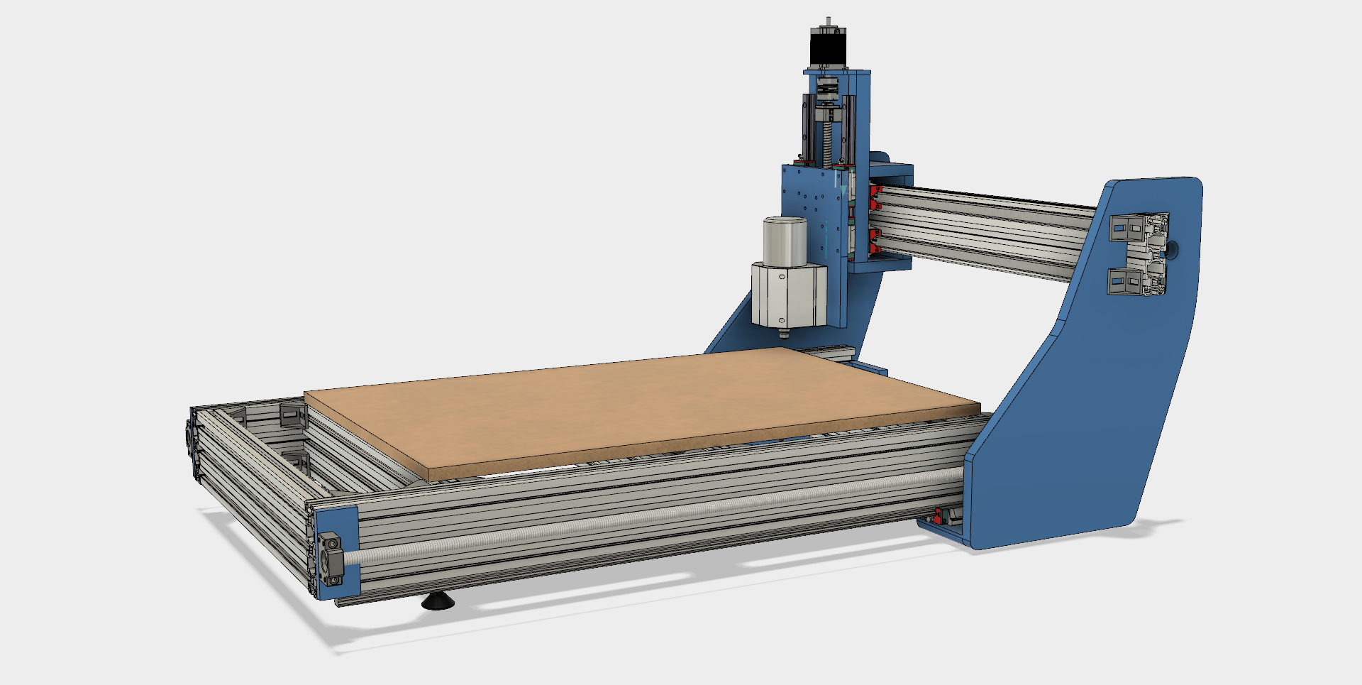 This machine will be used for milling soft and hardwoods, plastics and probably some shallow aluminium engraving. The work are is 900mm x 600mm. Much of it is based around 120mm x 80mm t-slot profiles. I have not made any decisions regarding the electronics yet, since I want to get the design to a workable state first. All suggestions regarding the electronics are gratefully received nonetheless.
