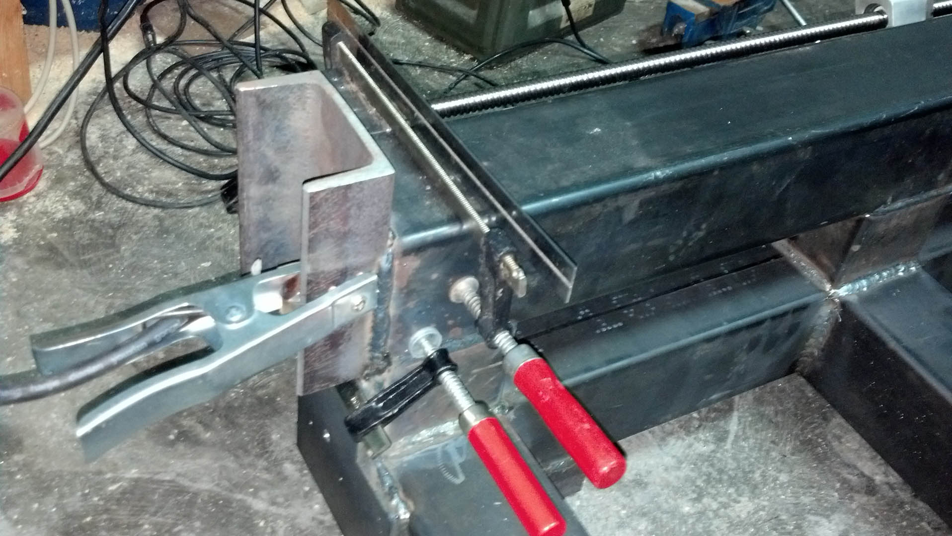 Well, the laser cut parts came. So, i finished soldering the parts to the frame. That includes the ball screw mounts. What i did was mount the ballscrews to the supports/in the middle so there is place left for adjustmennt/ and that greatly helped the correct placing. Carefully made some tacks with the Mig and waited all to cool, so checked again if the screws move smoothly. Have to note that the machine was welded with precision <1mm greatly helped.
