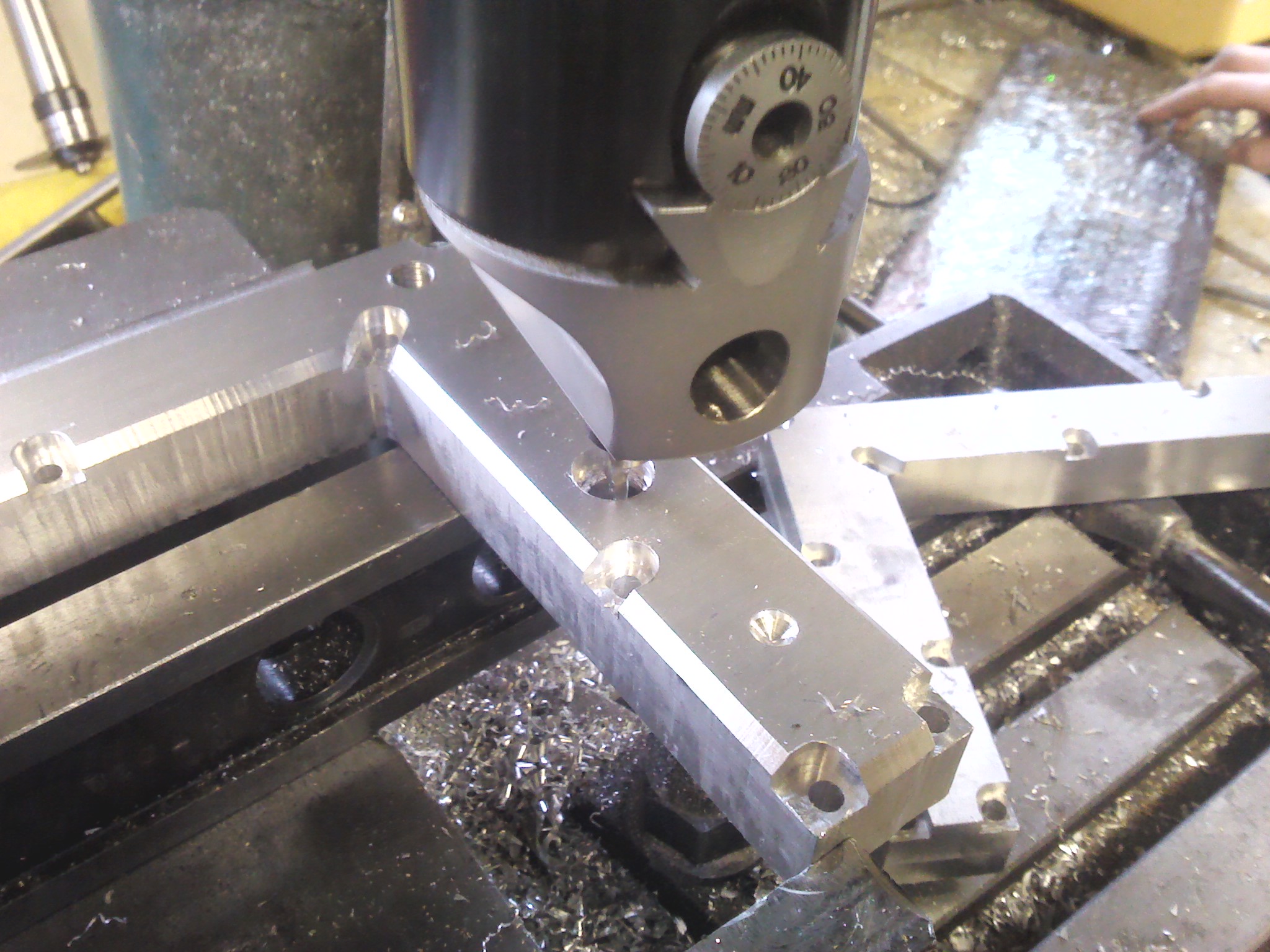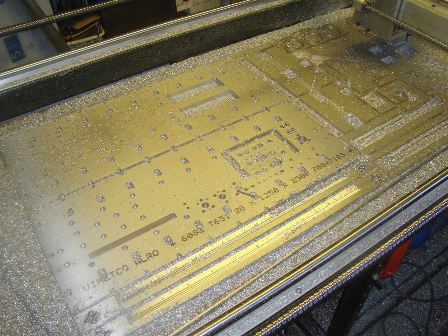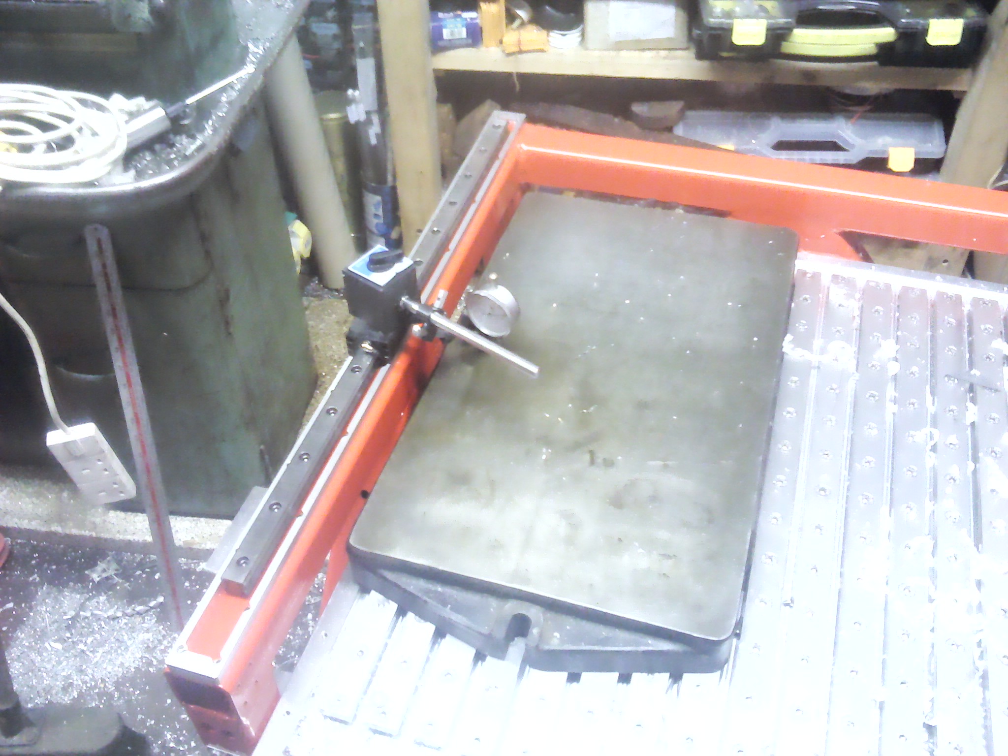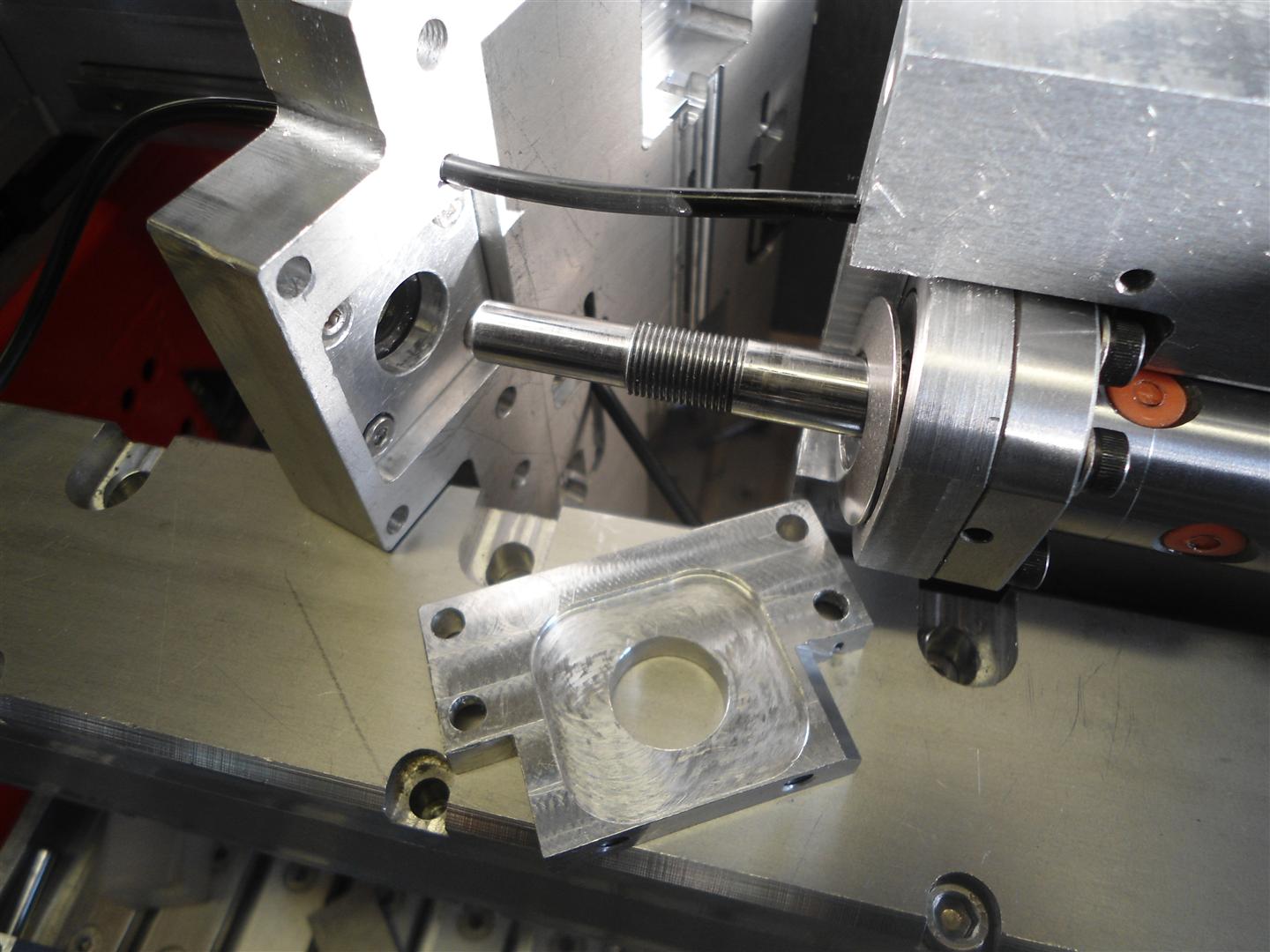 Before finishing the machine, I assembled the majority of it to find any problems or parts that would need altering. This gave the opportunity to test cutting something, so I put an offcut of 20mm 6082-T6 aluminium plate on the bed: