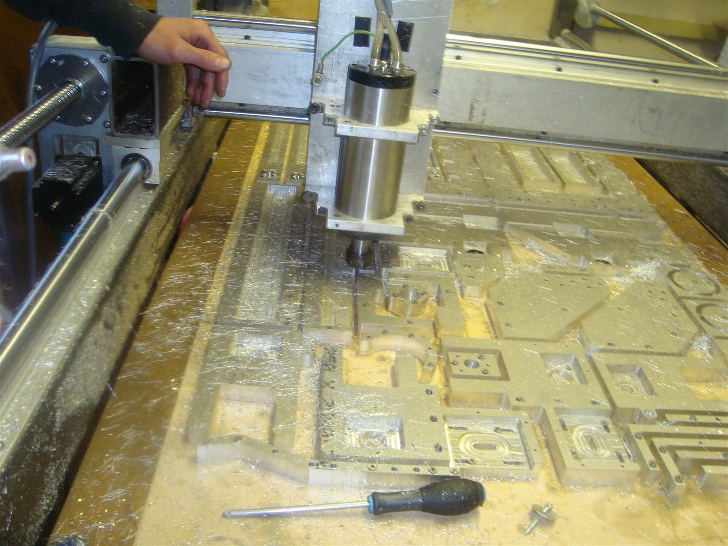 Overall we're happy with the machine. All the parts of the drive chain are adequate, and the main specifications of the machine have been met. It's strong enough to cut aluminium pretty quickly with just one X ballscrew attached.