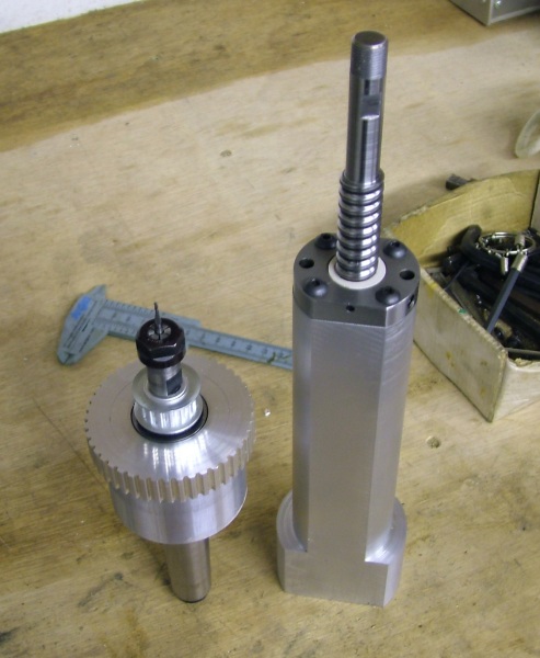 The ball nut is enclosed a la Kip, the bottom of the housing is wider to take a pair of 8mm set screws which tie it to the spindle, or not, as the case may be.