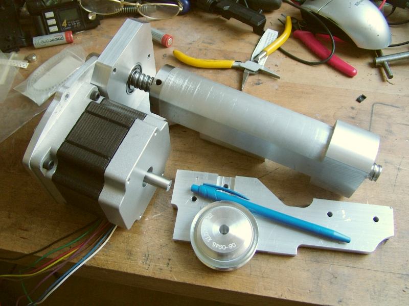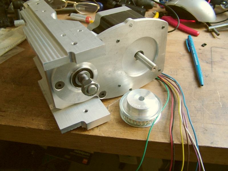 Going for the larger stepper motor this time with half the pulley reduction to put me in the power band. 1 rev = 4mm, half step = 10 microns.