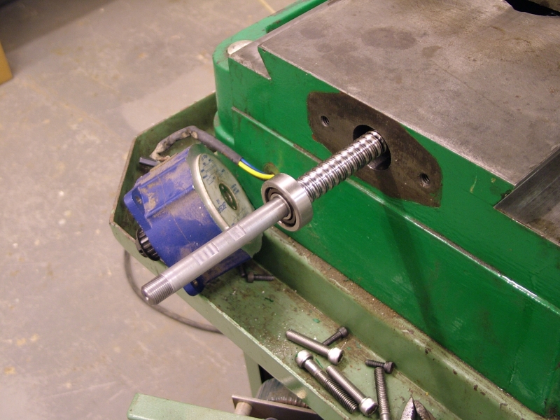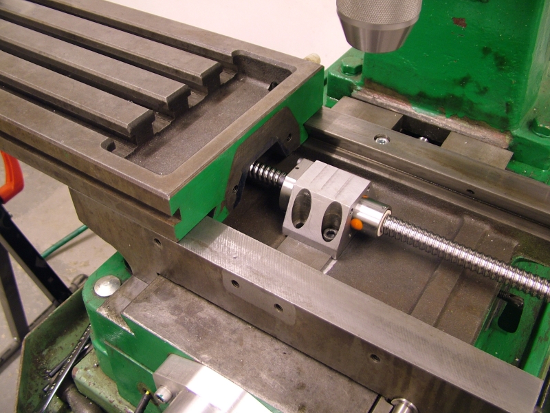 Next the X axis. Warco bolt the X nut on from below which is a pain because the Y screw is very much in the way. So I'm bolting it from above.