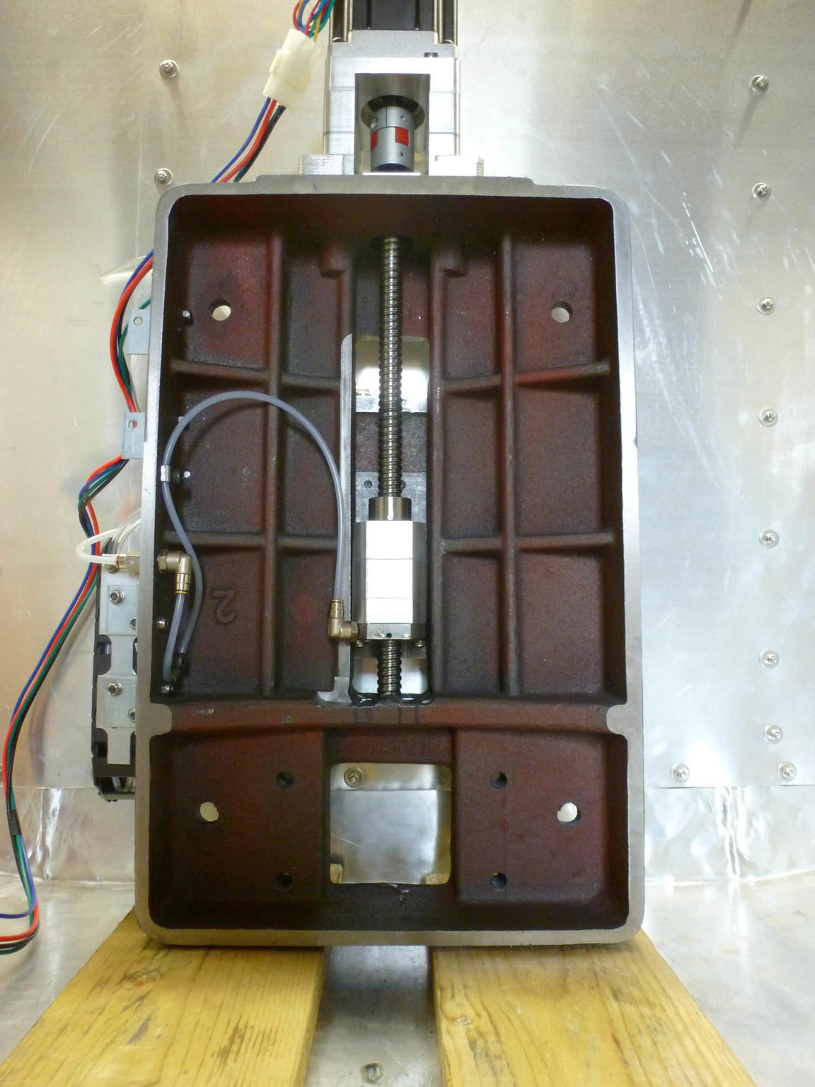Same AC bearings as the Y axis and a larger 1600oz Nema34 motor.