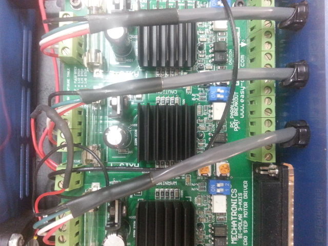 I still think (assuming 24V is plugged in to the board & a 25w ribbon connecting the control box back to the PC is in place) that if *none* of the axises are working, then it's likely to be a Mach 3 config problem (cos from recollection it wasn't that simple to configure the mechatronics board as a n00b in MAch 3)Last edited by HankMcSpank; 10-10-2013 at 07:44 PM.