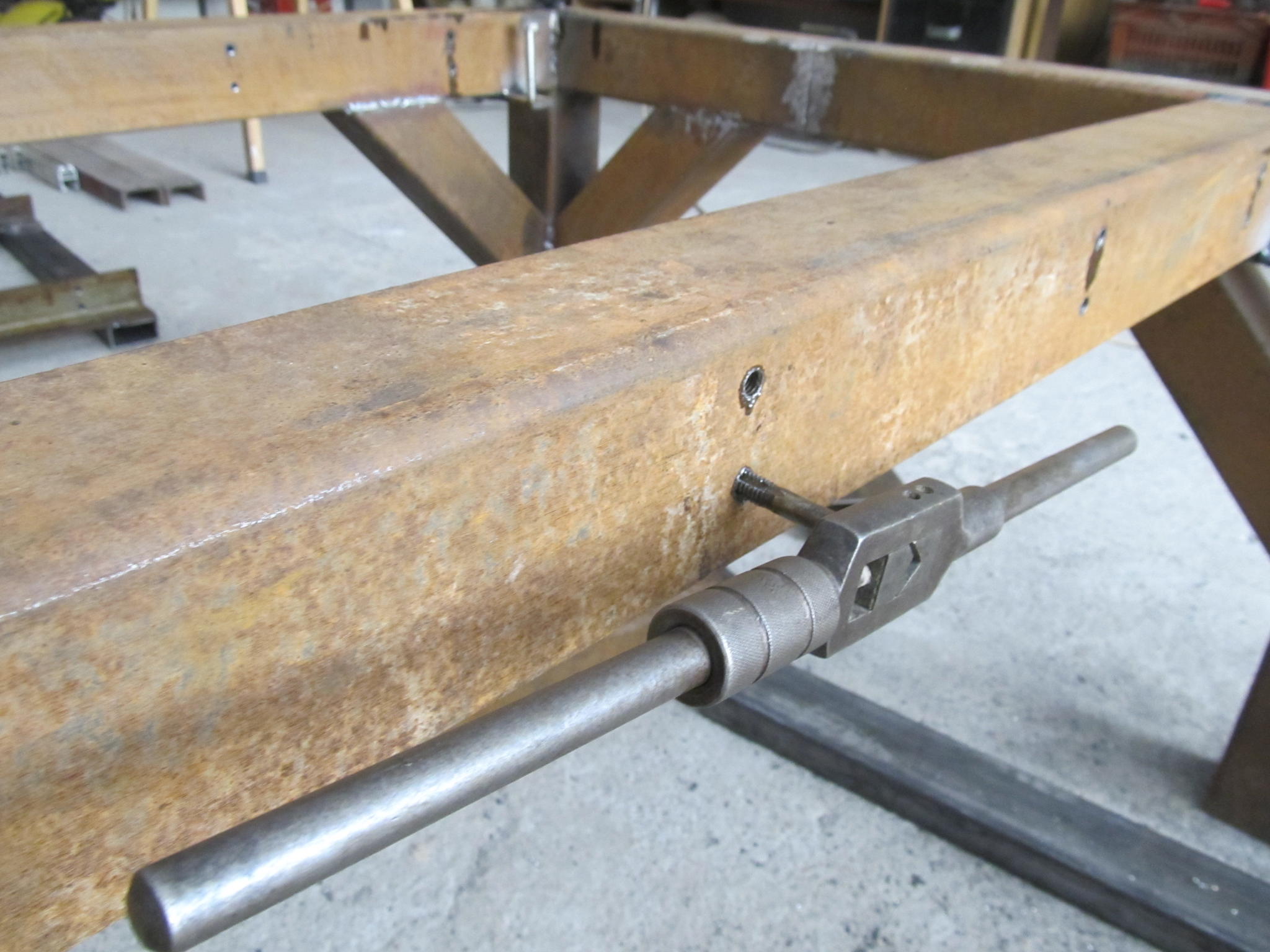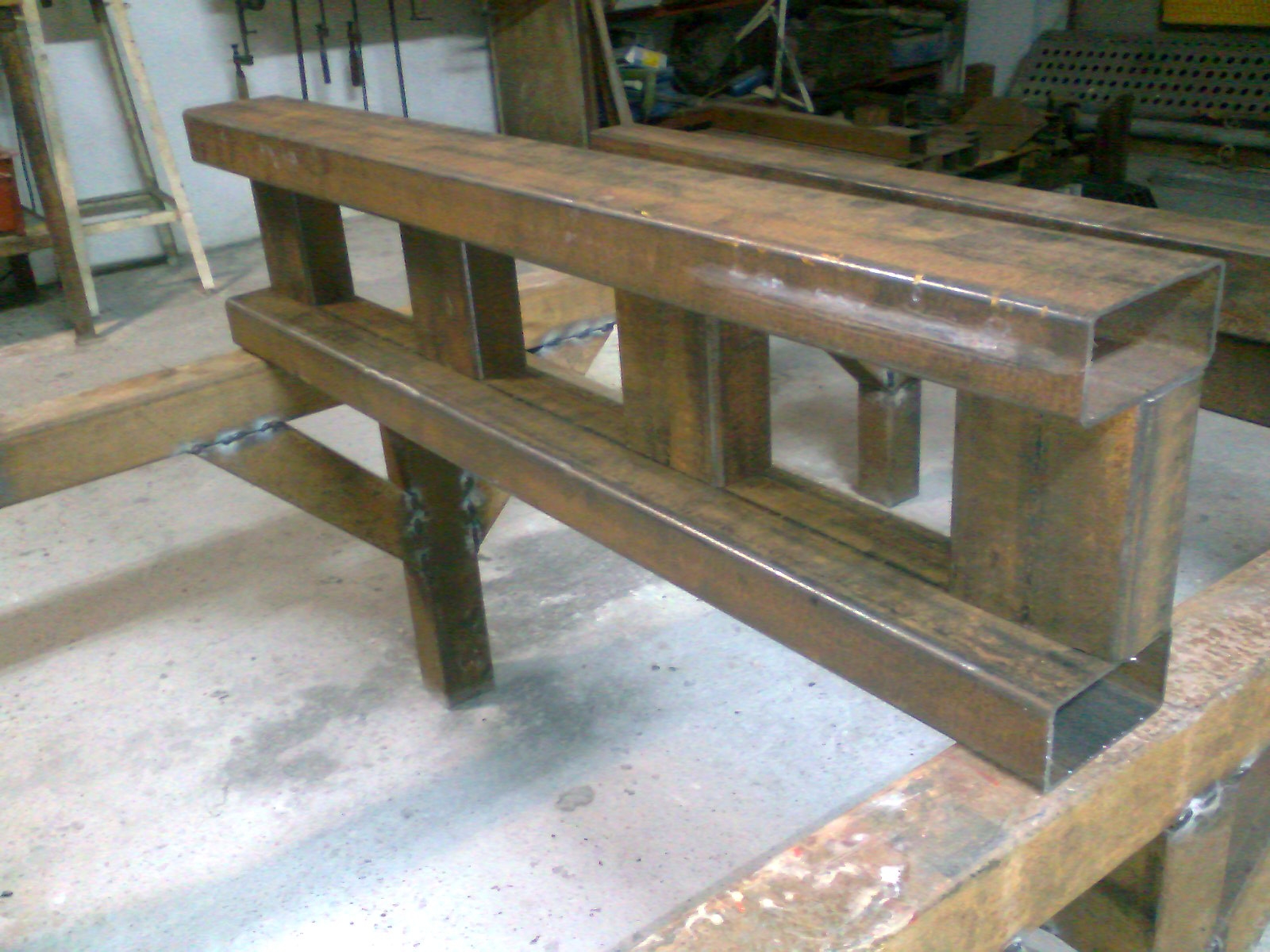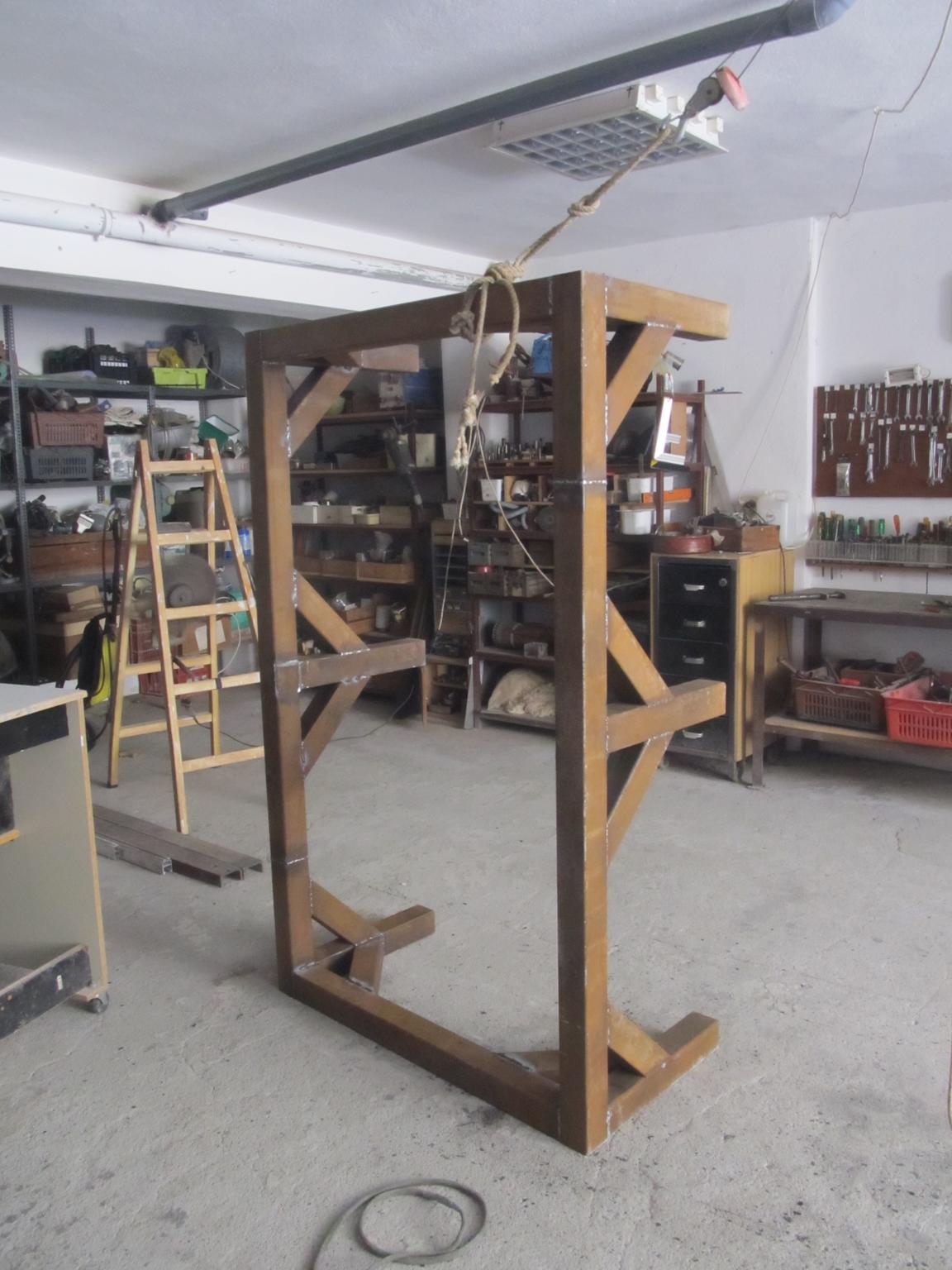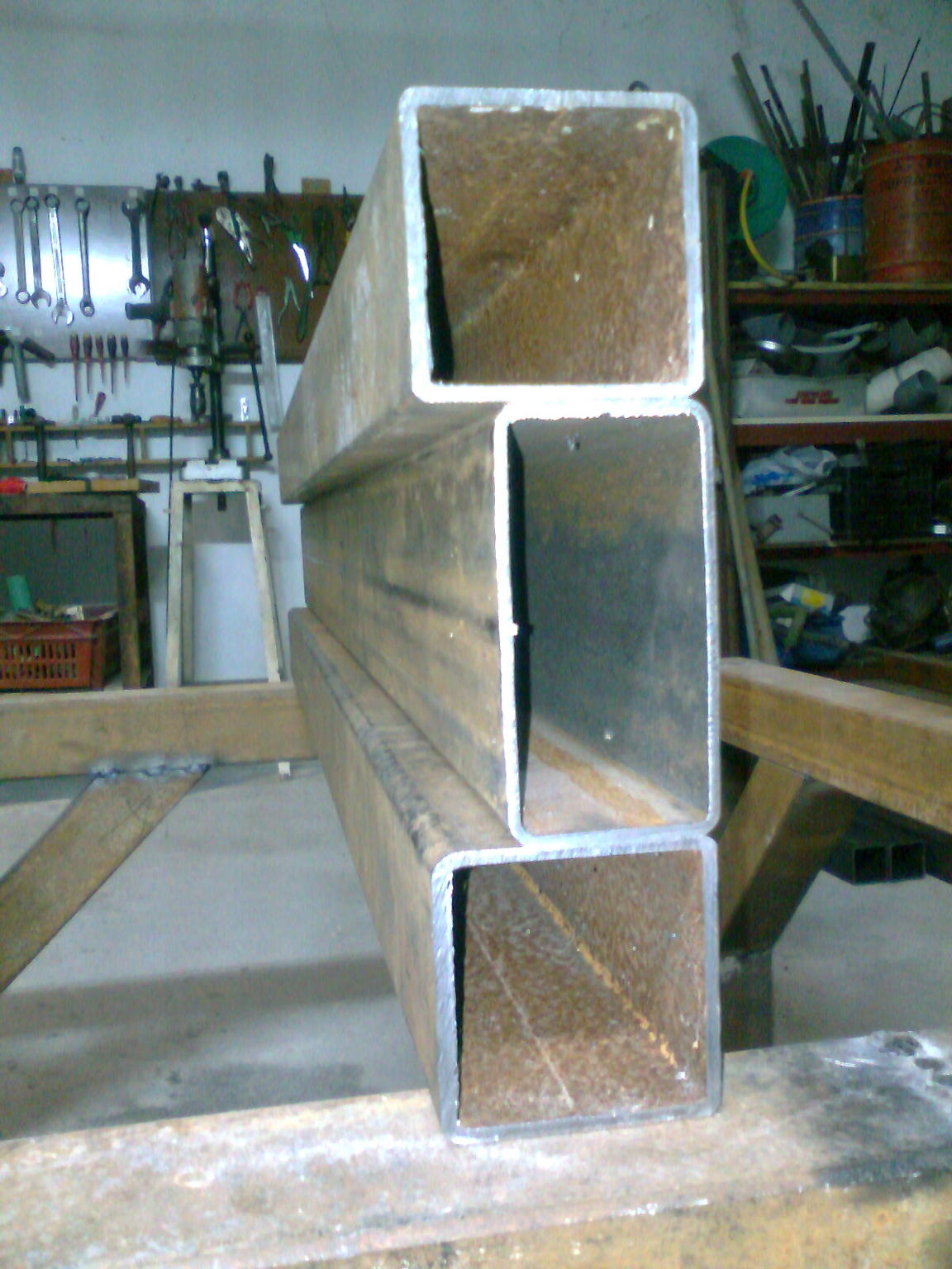 I remove the middle piece as i change my plans. Another three pieces will be welded vertical to the sides of the machine